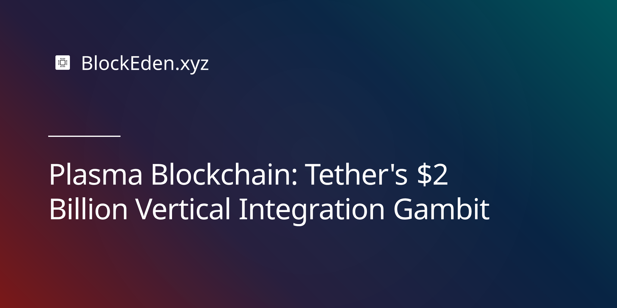 Plasma Blockchain: Tether's $2 Billion Vertical Integration Gambit