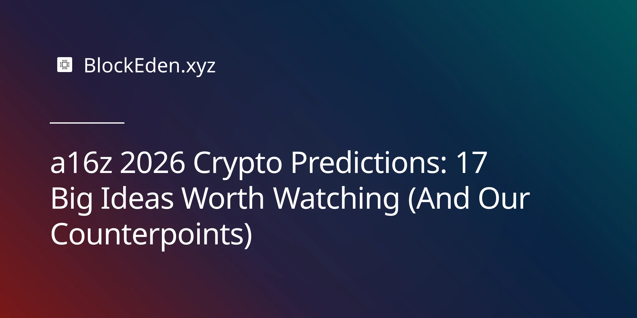 a16z 2026 Crypto Predictions: 17 Big Ideas Worth Watching (And Our Counterpoints)