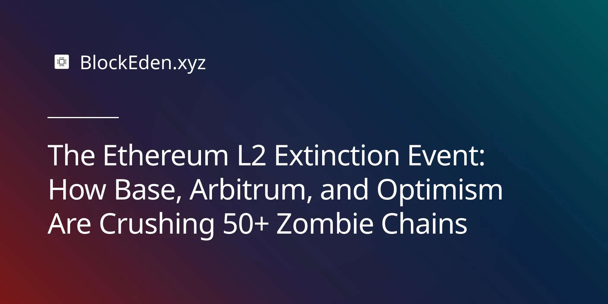 Ethereum's Layer 2 landscape is entering its final form—not the diverse, competitive ecosystem many hoped for, but a tight oligopoly where three networks control nearly everything that matters. The zombie chains will linger for years, running on minimal activity while their teams pivot to other projects or slowly wind down.