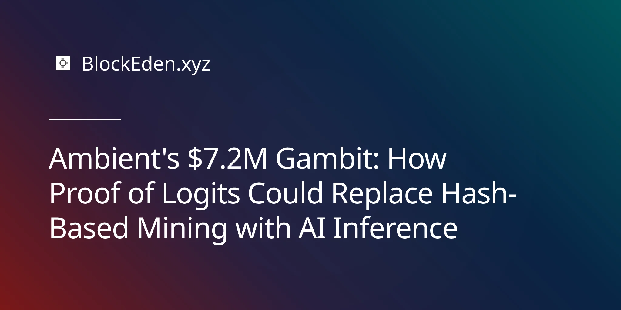 Ambient's $7.2M Gambit: How Proof of Logits Could Replace Hash-Based Mining with AI Inference