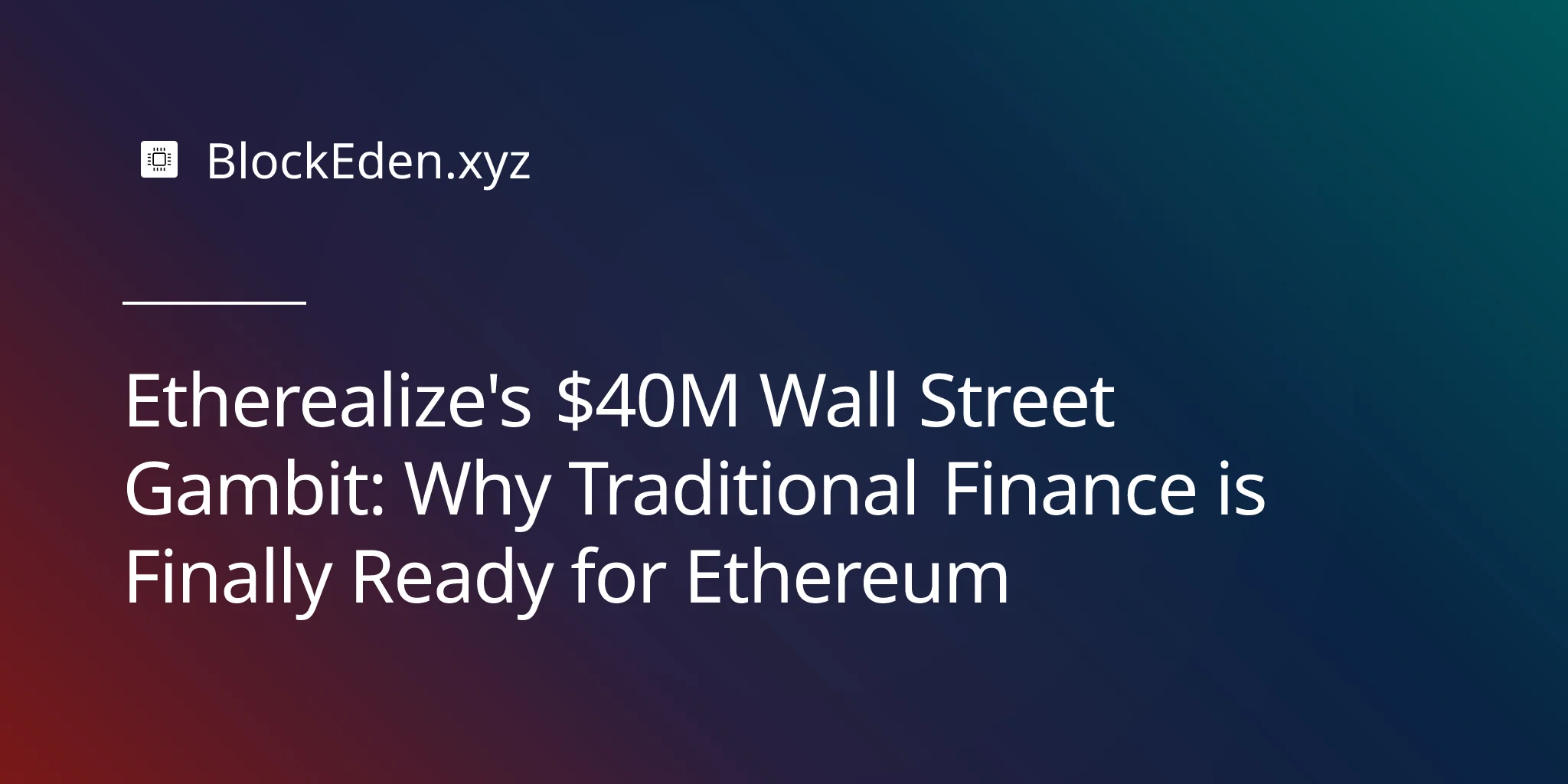 Etherealize's $40M Wall Street Gambit: Why Traditional Finance is Finally Ready for Ethereum