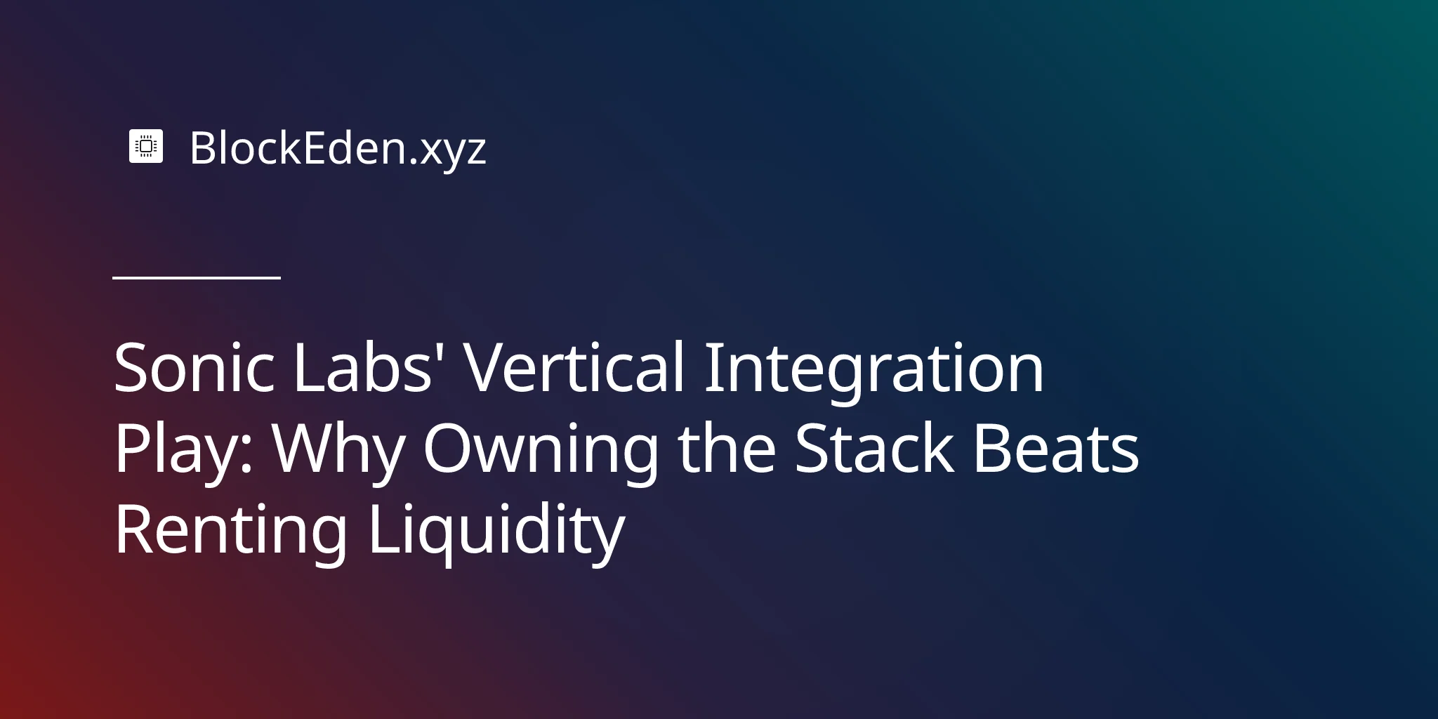 Sonic Labs' Vertical Integration Play: Why Owning the Stack Beats Renting Liquidity