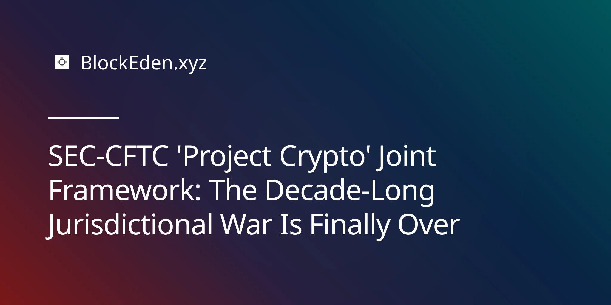 SEC-CFTC 'Project Crypto' Joint Framework: The Decade-Long Jurisdictional War Is Finally Over
