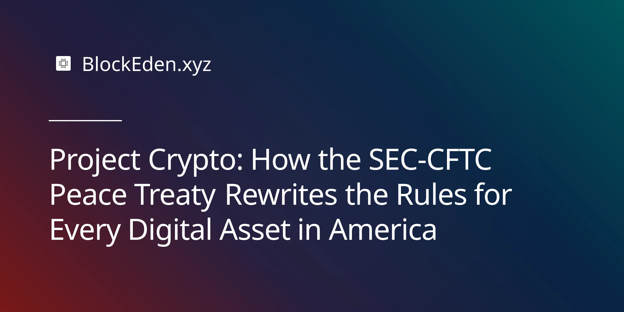 Project Crypto: How the SEC-CFTC Peace Treaty Rewrites the Rules for Every Digital Asset in America