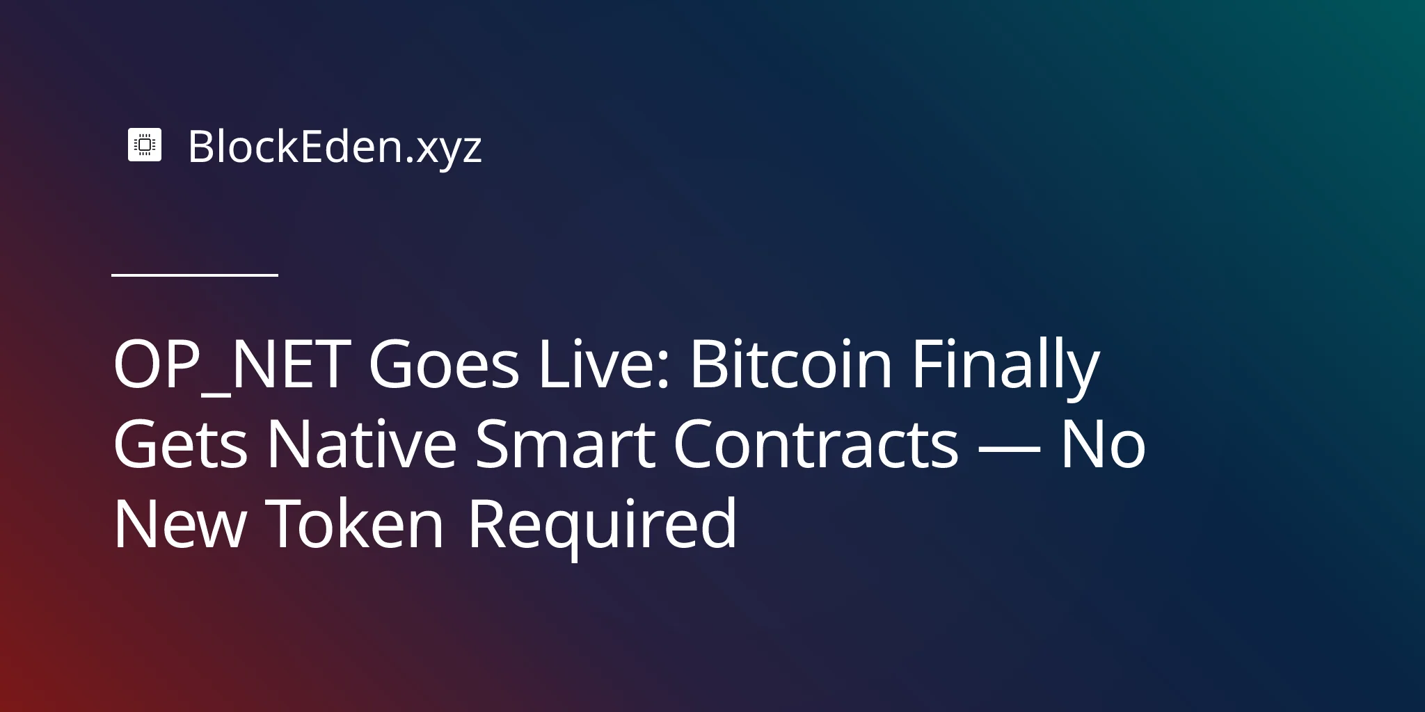 OP_NET Goes Live: Bitcoin Finally Gets Native Smart Contracts — No New Token Required