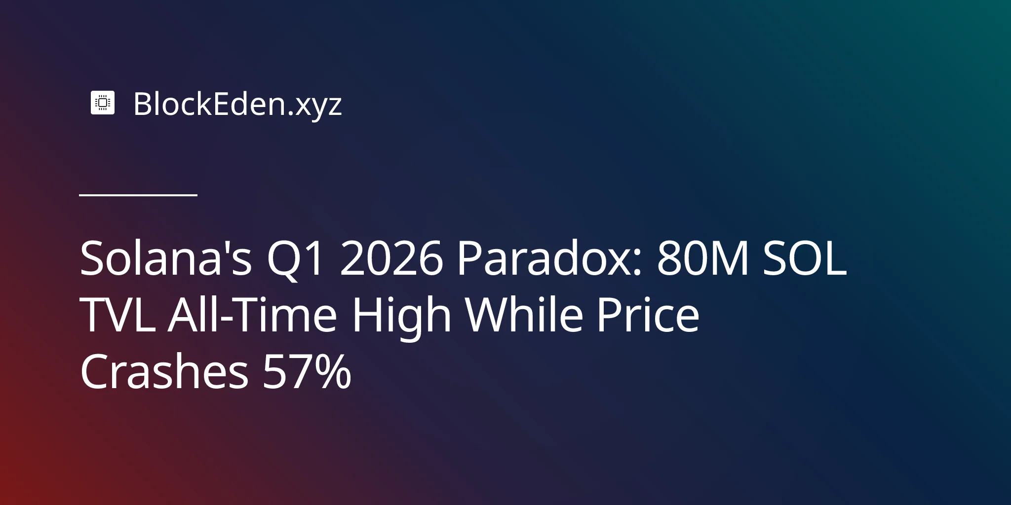 Solana's Q1 2026 Paradox: 80M SOL TVL All-Time High While Price Crashes 57%