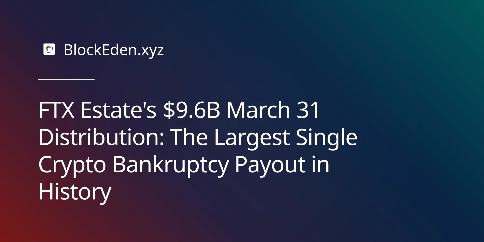 FTX Estate's $9.6B March 31 Distribution: The Largest Single Crypto Bankruptcy Payout in History