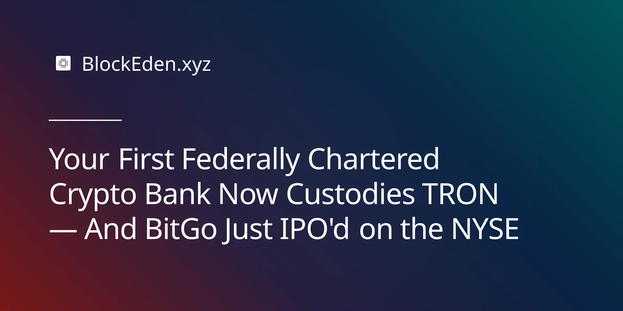 Your First Federally Chartered Crypto Bank Now Custodies TRON — And BitGo Just IPO'd on the NYSE