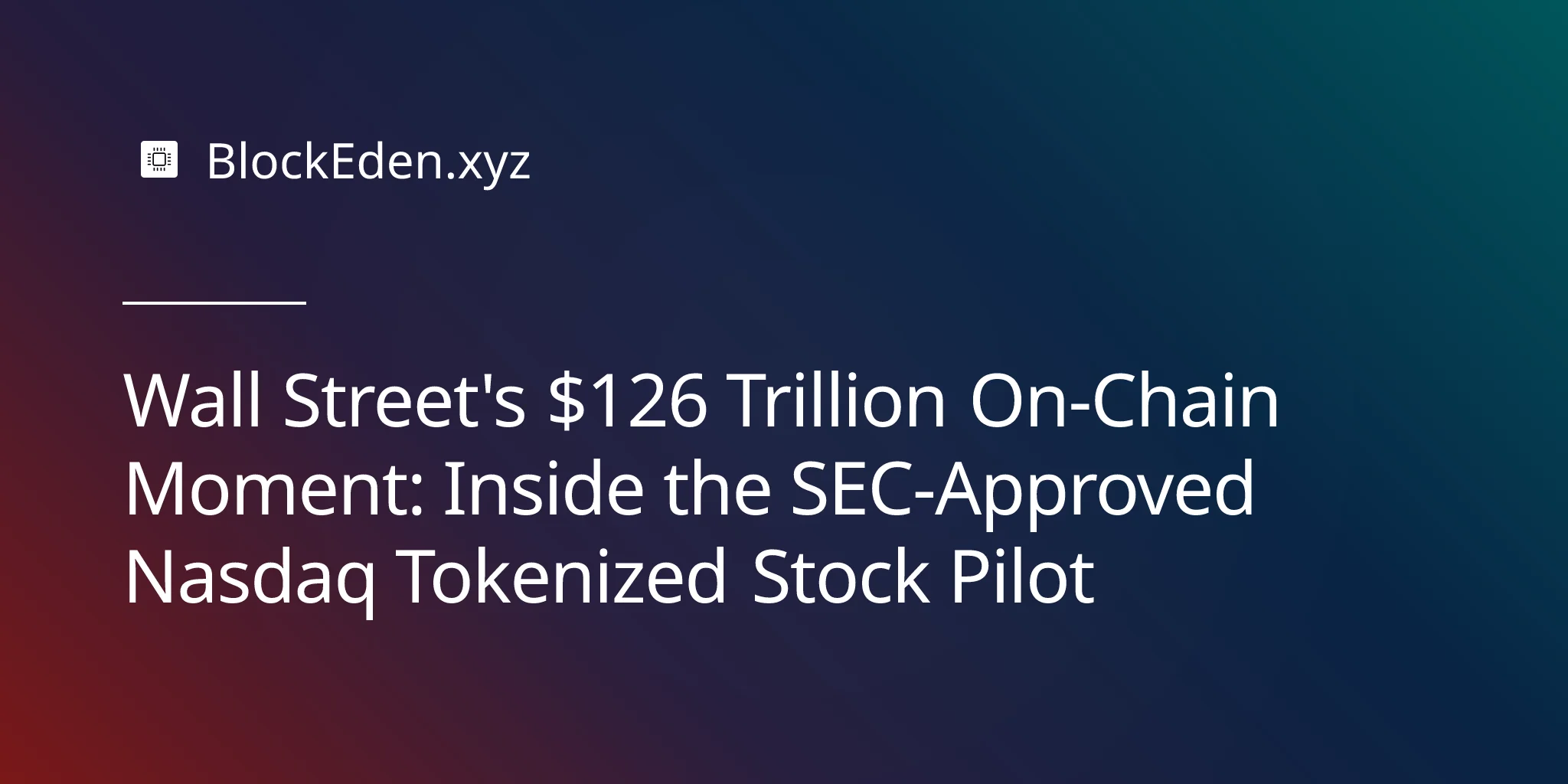 Wall Street's $126 Trillion On-Chain Moment: Inside the SEC-Approved Nasdaq Tokenized Stock Pilot