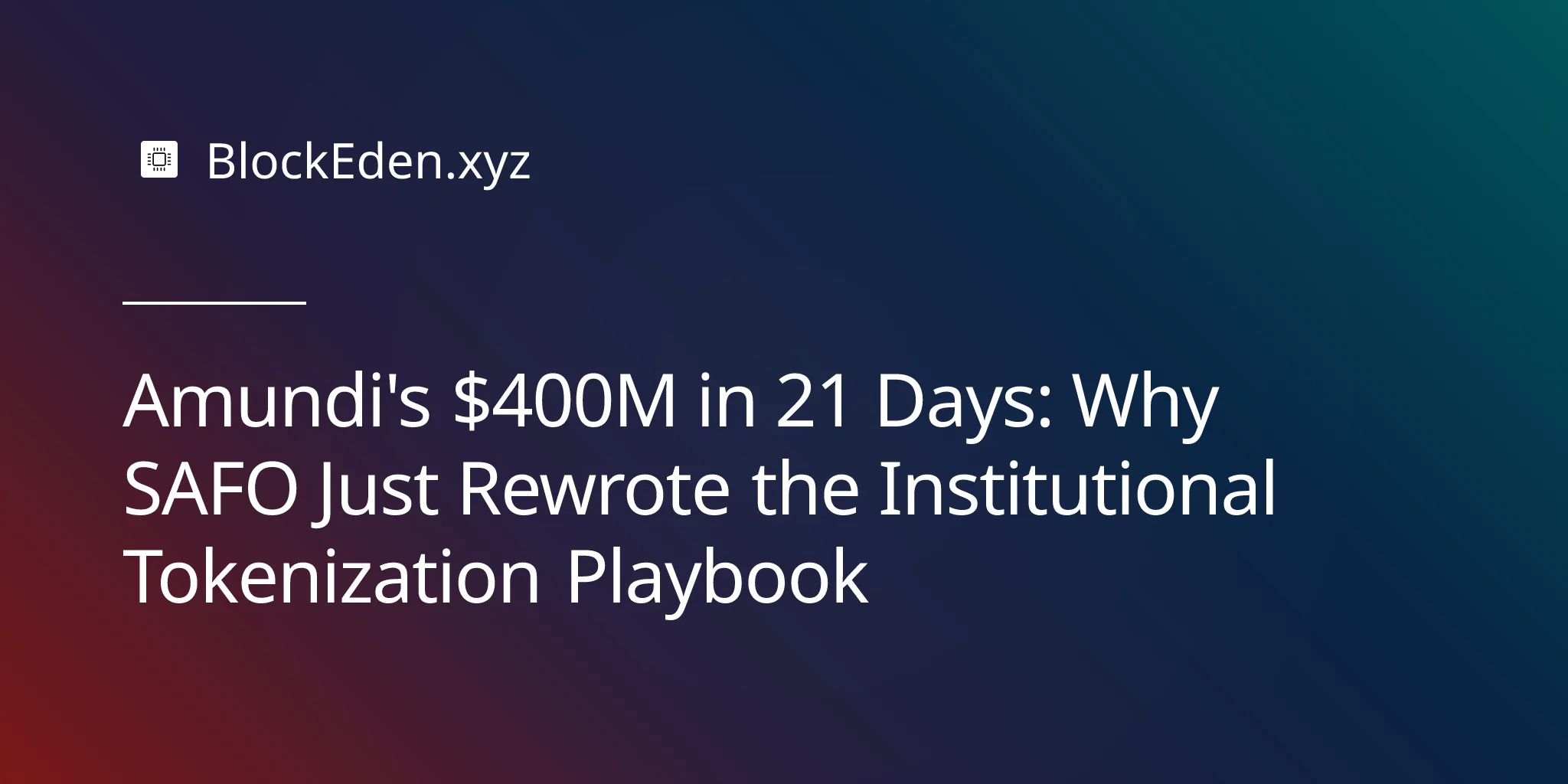 Amundi's $400M in 21 Days: Why SAFO Just Rewrote the Institutional Tokenization Playbook