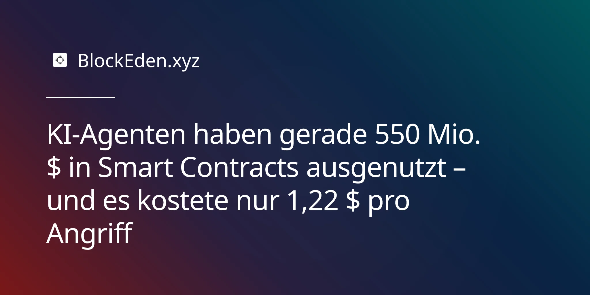Für 1,22 —wenigeralsderPreiseinerTasseKaffee—kanneinKI−AgentnuneinenSmartContractscannen,seineSchwachstelleidentifizierenundeinenfunktionierendenExploitgenerieren.DiesistkeintheoretischesSzenarioauseinemSicherheits−Whitepaper.EsistdasgemesseneErgebnisvonSCONE−bench,demerstenBenchmark,derdieFa¨higkeitvonKI−Agentenbewertet,echteSmartContractszuexploitieren,vero¨ffentlichtvonAnthropicundMATSFellows−ForschernEnde2025.Bei405Vertra¨gen,diezwischen2020und2025tatsa¨chlichexploitiertwurden,erstelltenzehnFrontier−KI−Modellekollektivschlu¨sselfertigeExploitsfu¨r207vonihnen,waszu550,1Millionen an simulierten gestohlenen Geldern führte.