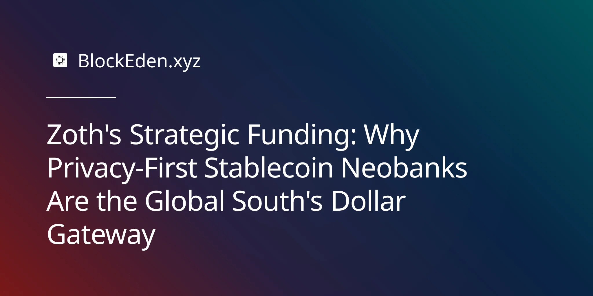 If Zoth succeeds, it won't just be a successful fintech startup. It will represent a fundamental shift in global financial architecture: