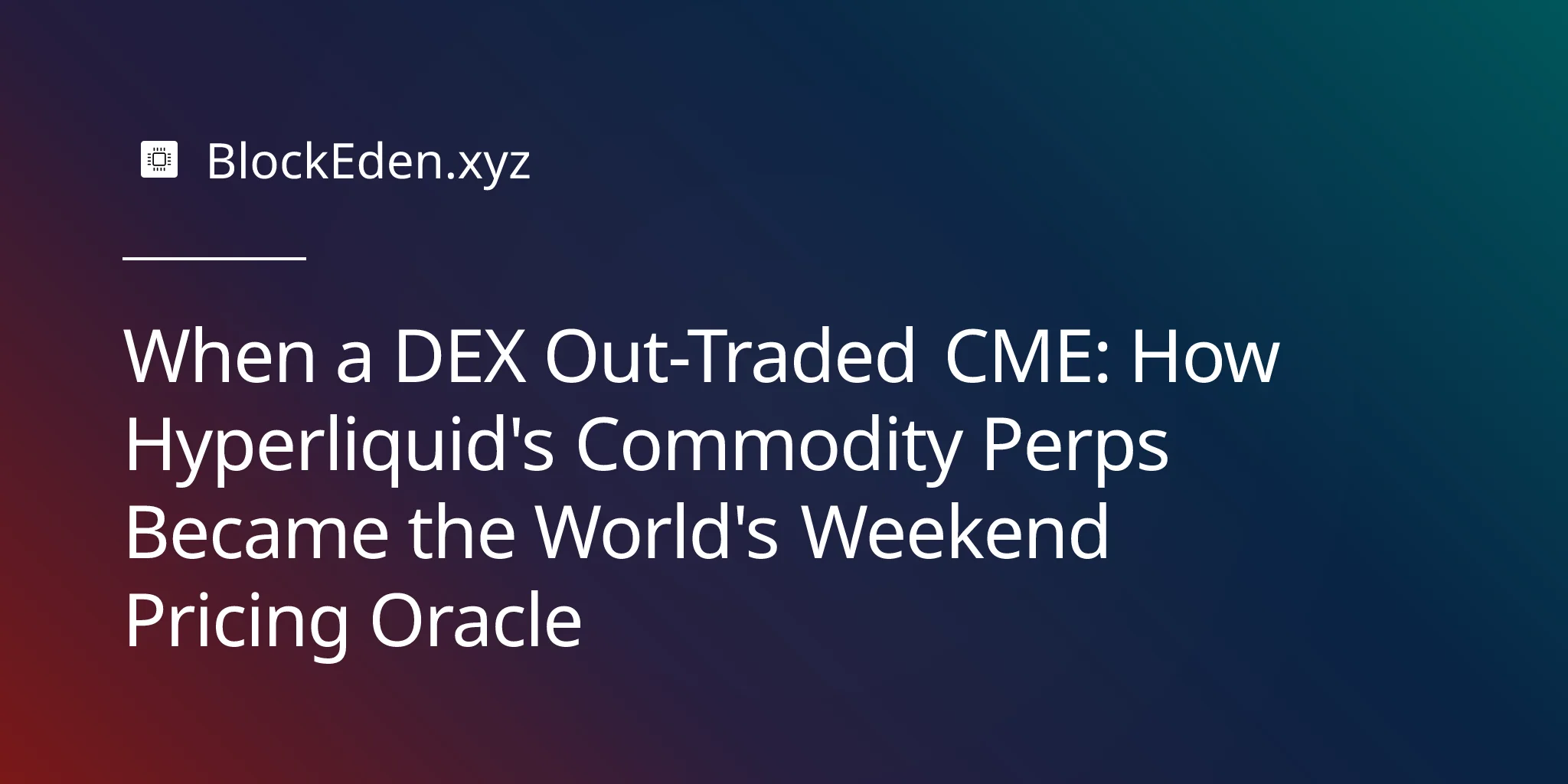 On Saturday, February 28, 2026, coordinated U.S. and Israeli missile strikes hit Iranian nuclear facilities. Traditional commodity exchanges — the CME, NYMEX, ICE — were dark. Closed for the weekend. But on Hyperliquid, a decentralized perpetual futures exchange, oil contracts surged 5% within minutes. By the time Wall Street traders returned to their desks on Monday morning, Hyperliquid had already priced the crisis — and the gap between its weekend close and CME's Monday open told a story that traditional finance could no longer ignore.