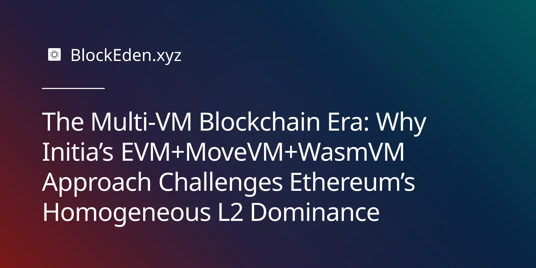 The multi-VM blockchain era isn't about replacing Ethereum. It's about expanding what's possible beyond EVM's limitations. For applications where Move's resource safety, Wasm's performance, or EVM's ecosystem access each matter for different components, platforms like Initia offer a compelling alternative to monolithic architectures.