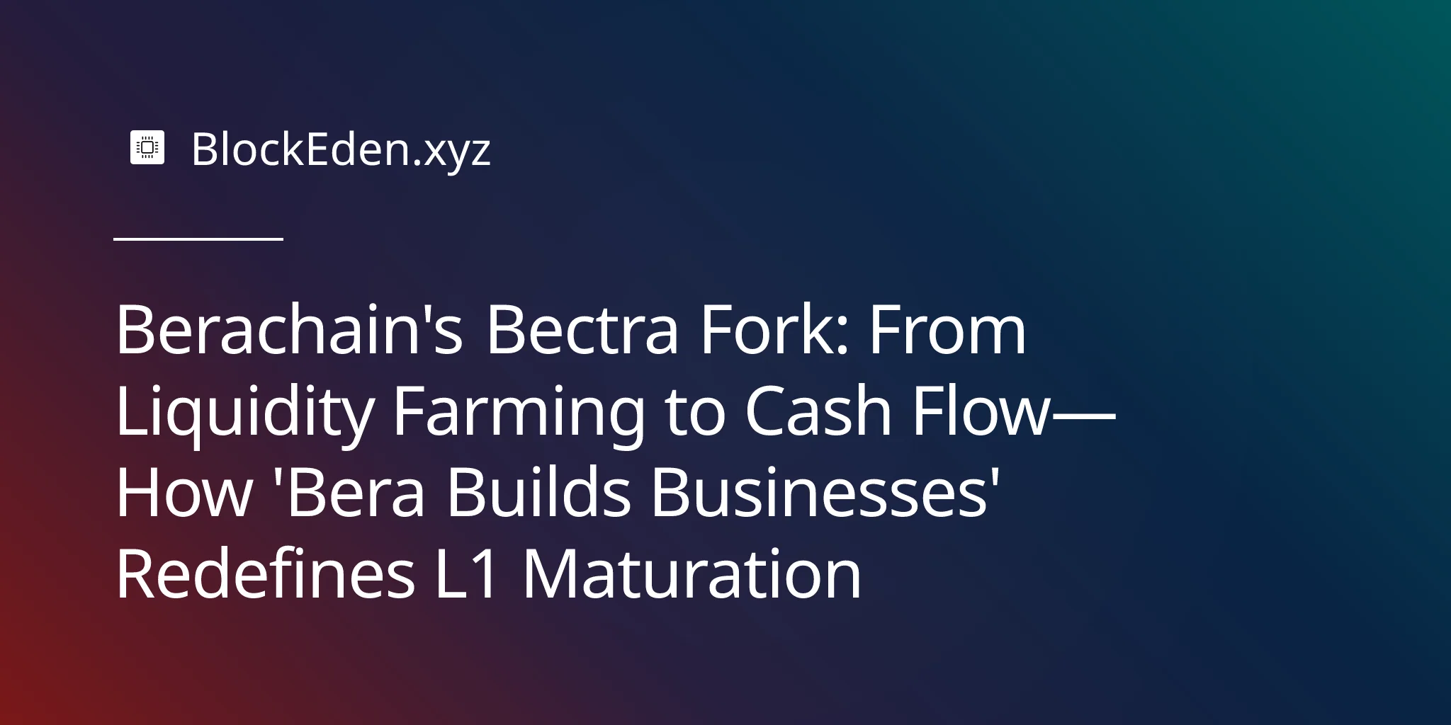 Berachain's Bectra Fork: From Liquidity Farming to Cash Flow—How 'Bera Builds Businesses' Redefines L1 Maturation