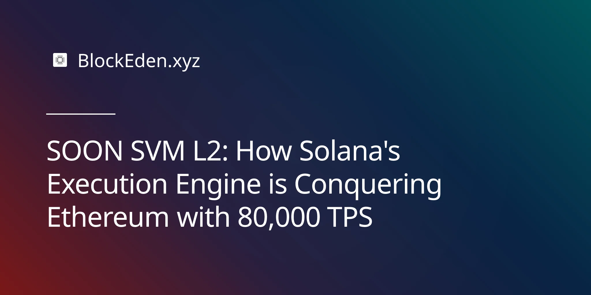 What happens when you take Solana's fastest execution engine and plant it on Ethereum's security foundation? SOON Network answered that question with a number that makes every EVM rollup look antiquated: 80,000 transactions per second. That's 40x faster than any EVM-based Layer 2 and 240x faster than Ethereum mainnet. The Solana Virtual Machine isn't just running on Solana anymore—it's coming for Ethereum's rollup ecosystem.