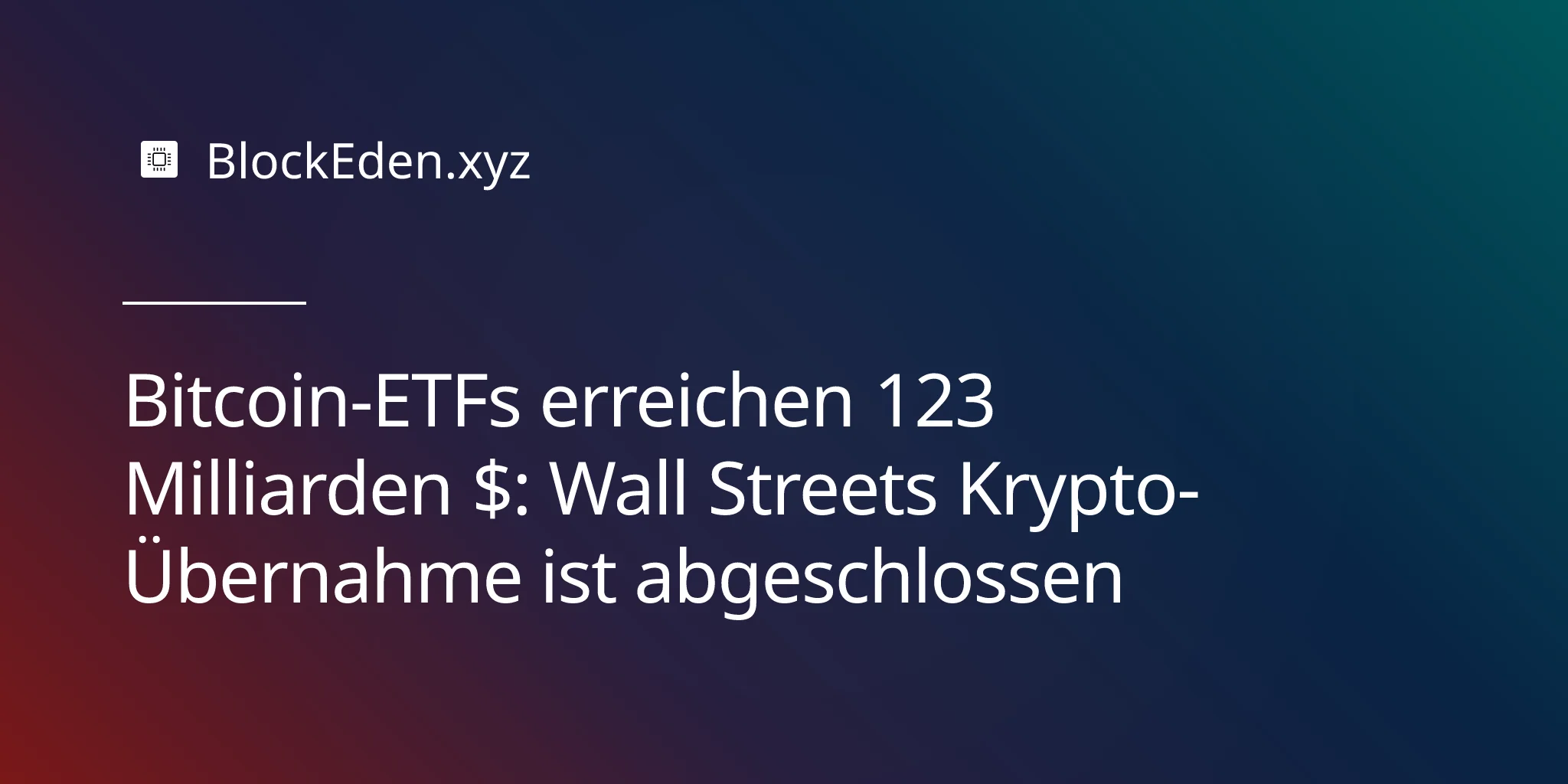 Bitcoin-ETFs erreichen 123 Milliarden $: Wall Streets Krypto-Übernahme ist abgeschlossen