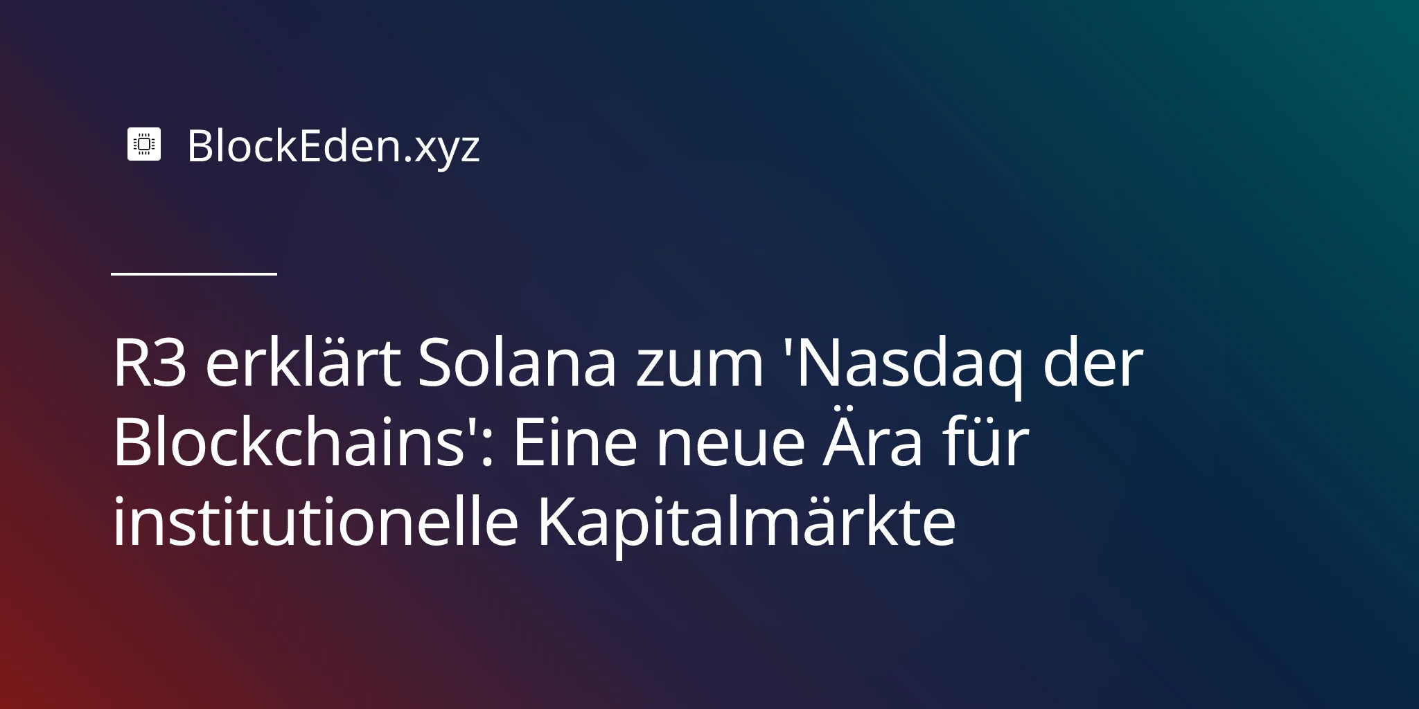 R3 erklärt Solana zum 'Nasdaq der Blockchains': Eine neue Ära für institutionelle Kapitalmärkte