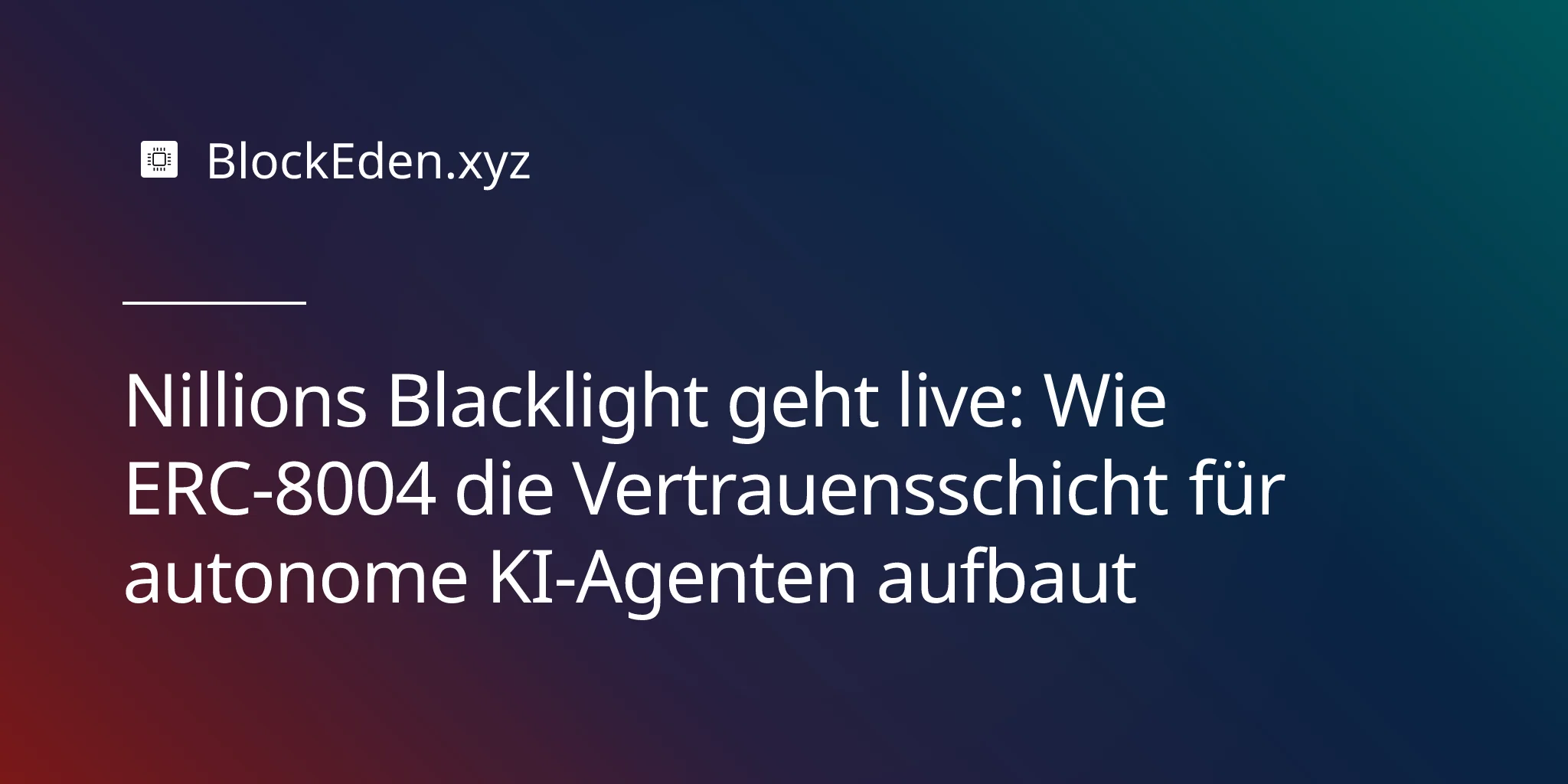 Nillions Blacklight geht live: Wie ERC-8004 die Vertrauensschicht für autonome KI-Agenten aufbaut