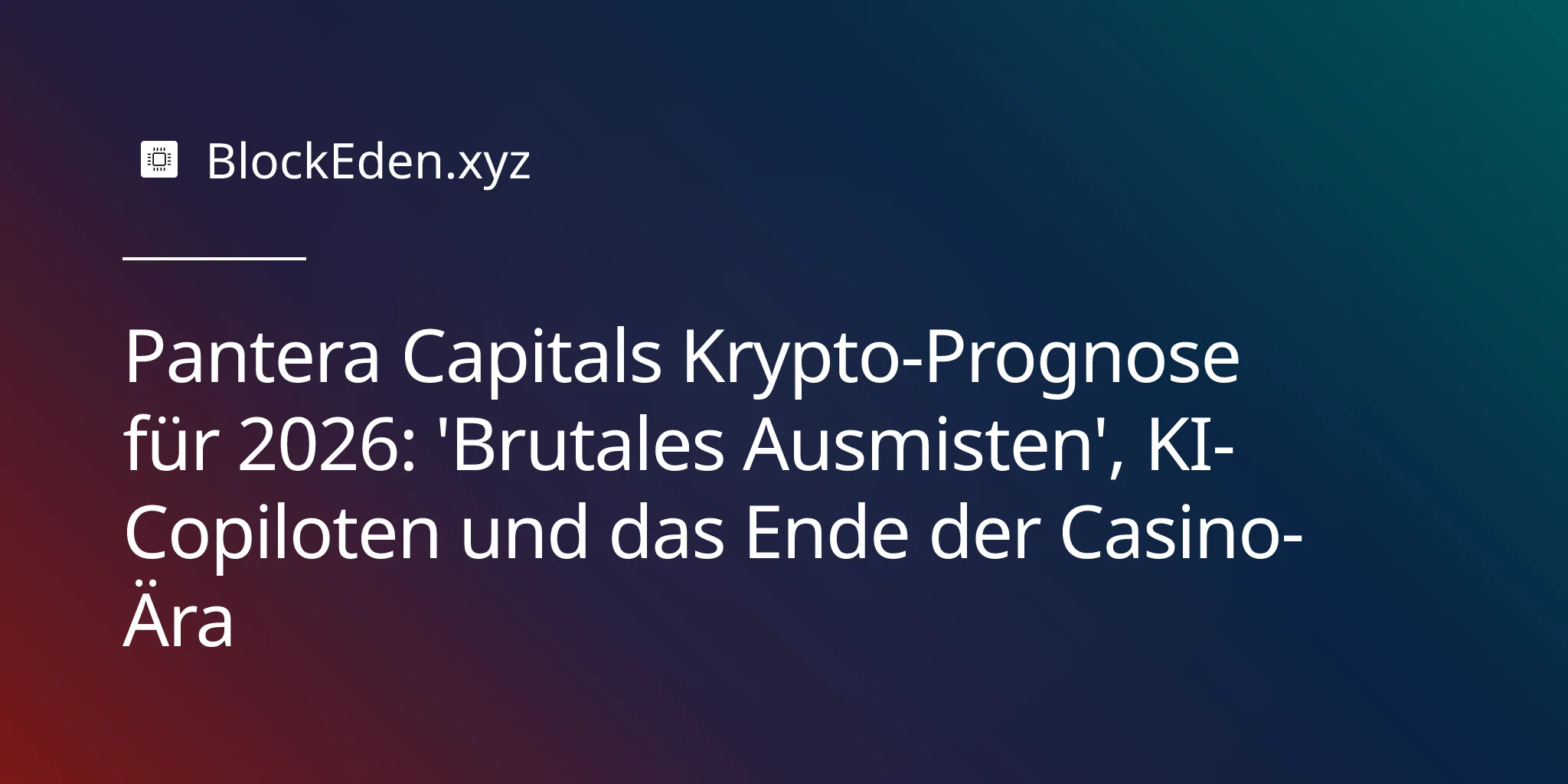 Pantera Capital, der älteste institutionelle Fonds der Kryptoindustrie mit einem verwalteten Vermögen von 4,8 Mrd. $ und einem Portfolio von 265 Unternehmen, hat seinen bisher detailliertesten Jahresausblick veröffentlicht. Der Brief, verfasst von Managing Partner Cosmo Jiang, Partner Paul Veradittakit und Research-Analyst Jay Yu, destilliert neun Vorhersagen und zwölf Thesen in eine einzige Botschaft: 2026 ist das Jahr, in dem Krypto aufhört, ein Casino zu sein, und beginnt, eine Infrastruktur zu werden. Diese These verdient eine genauere Betrachtung.