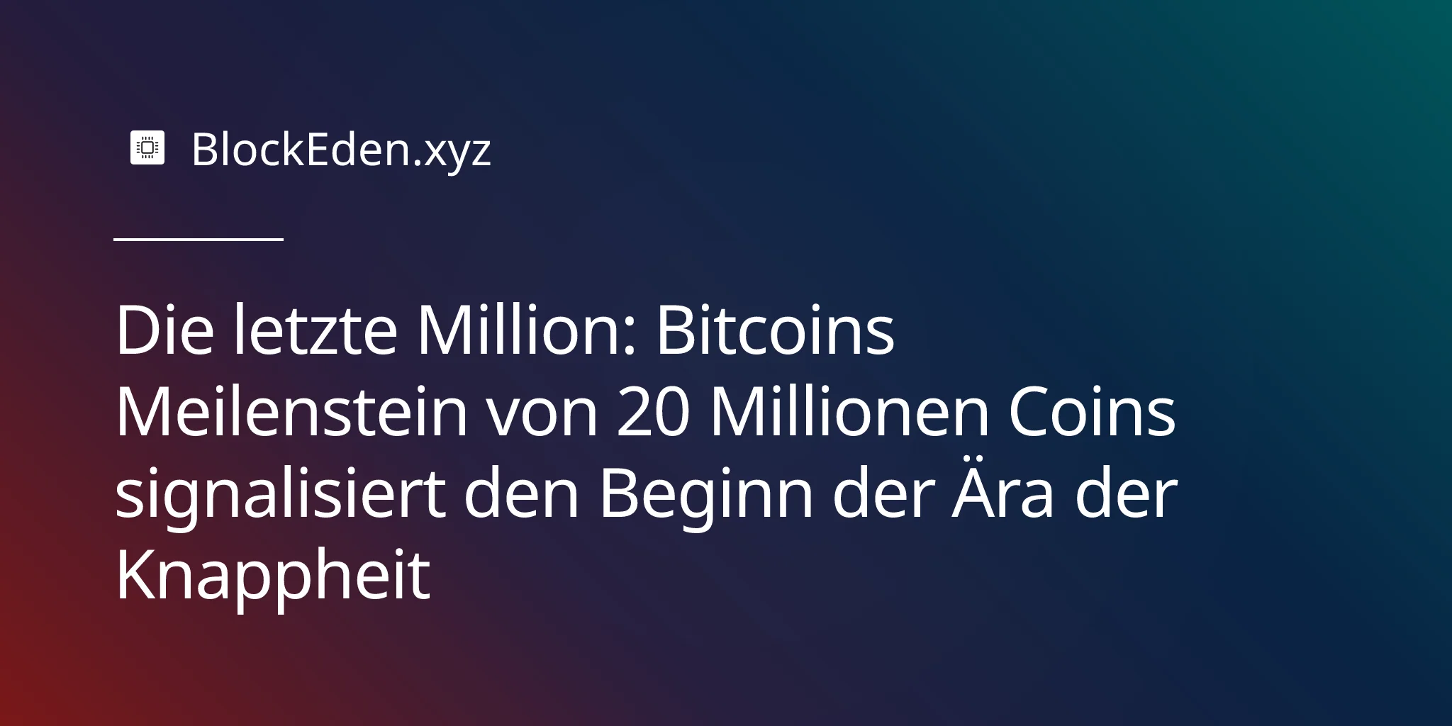 Der 20-Millionen-Coin-Meilenstein ist anders. Er ist ein psychologischer und narrativer Wendepunkt, der die Geschichte der Knappheit von Bitcoin in menschlich fassbare Begriffe rückt.
