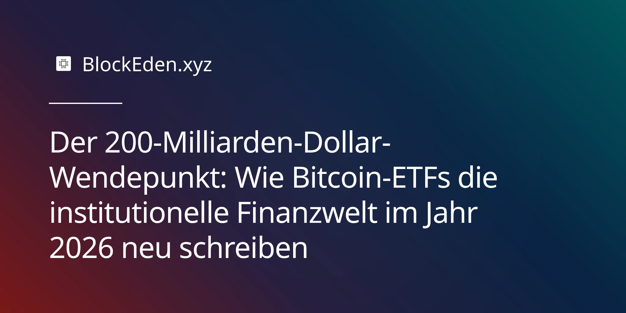 Die bedeutendere Frage ist nicht, ob Bitcoin-ETFs 200 Milliarden erreichen,sondernwasdanachpassiert.Bei400Milliarden an gesamten Krypto-ETP-Vermögenswerten werden digitale Assets in der institutionellen Portfoliokonstruktion unmöglich zu ignorieren sein. In diesem Maßstab wandelt sich Bitcoin von einer „alternativen Anlage“ zu einer „strategischen Allokation“ – ein Wandel, der das nächste Jahrzehnt der institutionellen Finanzwelt definieren könnte.