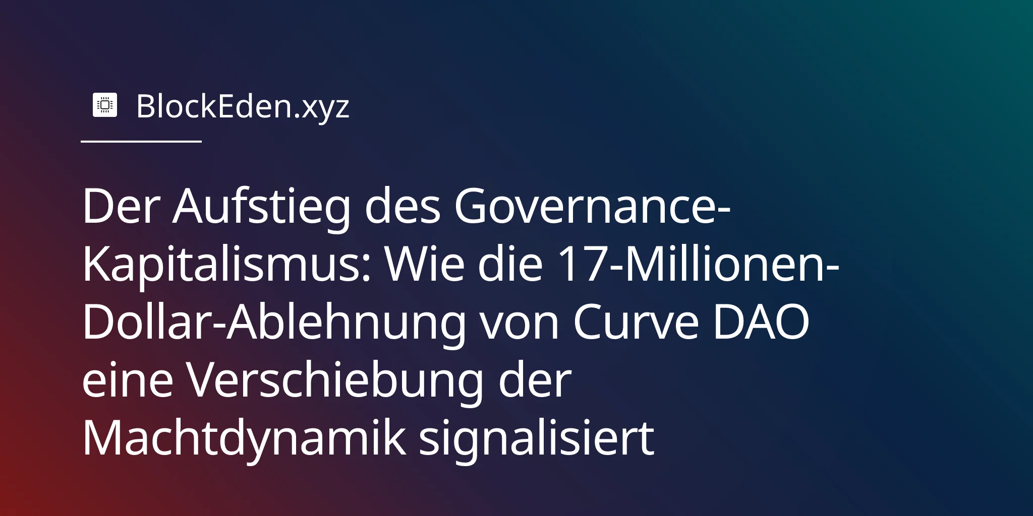 Als die Curve DAO im Dezember 2025 einen CRV-Zuschussantrag in Höhe von 17 Millionen $ von ihrem eigenen Gründer ablehnte, war dies nicht nur eine weitere Governance-Abstimmung. Es war eine Erklärung, dass die Ära der von Gründern kontrollierten DAOs endet – ersetzt durch etwas, das weder Idealisten noch Kritiker voll und ganz vorausgesehen haben: Governance-Kapitalismus, bei dem konzentriertes Kapital und nicht die Stimmung der Community oder die Gründungsteams die entscheidende Macht innehat.