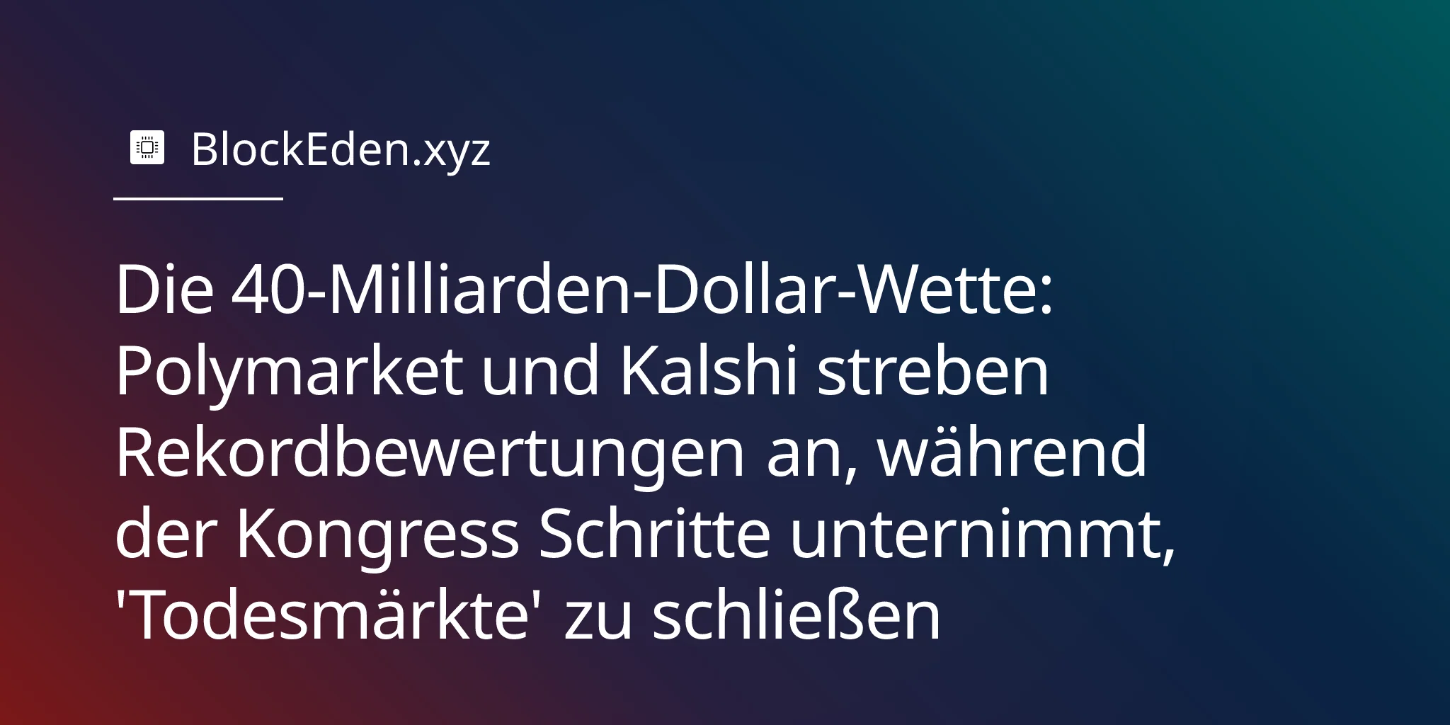 Die Herausforderung der Branche ist existenzieller, nicht operativer Natur. Polymarket und Kalshi müssen Regulierungsbehörden und die Öffentlichkeit davon überzeugen, dass Prognosemärkte die "Informationsmärkte" sein können, die ihre Befürworter beschreiben — ohne zu den "Todesmärkten" zu werden, die ihre Kritiker fürchten. Bei kombinierten Zielbewertungen von $ 40 Milliarden stand noch nie so viel auf dem Spiel.