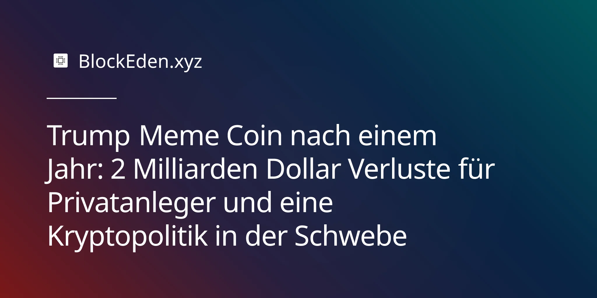 Eine Milliarde Dollar für die Trump-Familie. Zwei Milliarden Dollar Verlust für 813.000 private Wallets. Und ein Krypto-Regulierungsrahmen im Ungewissen. Das ist die Einjahresbilanz von Amerikas präsidialem Memecoin-Experiment.