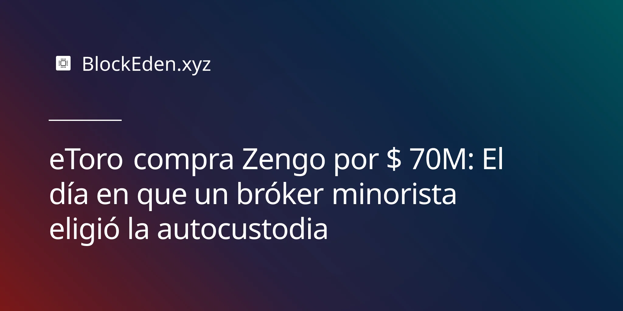 El 15 de abril de 2026, una correduría minorista cotizada con 35 millones de usuarios hizo algo que ningún par que cotiza en el Nasdaq había hecho antes: compró una empresa de billeteras de autocustodia en lugar de construir una. La adquisición por 70 millones de dólares, principalmente en efectivo, de la startup israelí de billeteras MPC Zengo por parte de eToro es la señal más clara hasta ahora de que las guerras por la custodia ya no son "Coinbase vs. Kraken". Ahora son "exchanges vs. autocustodia", y los exchanges están comenzando a cubrir sus riesgos.