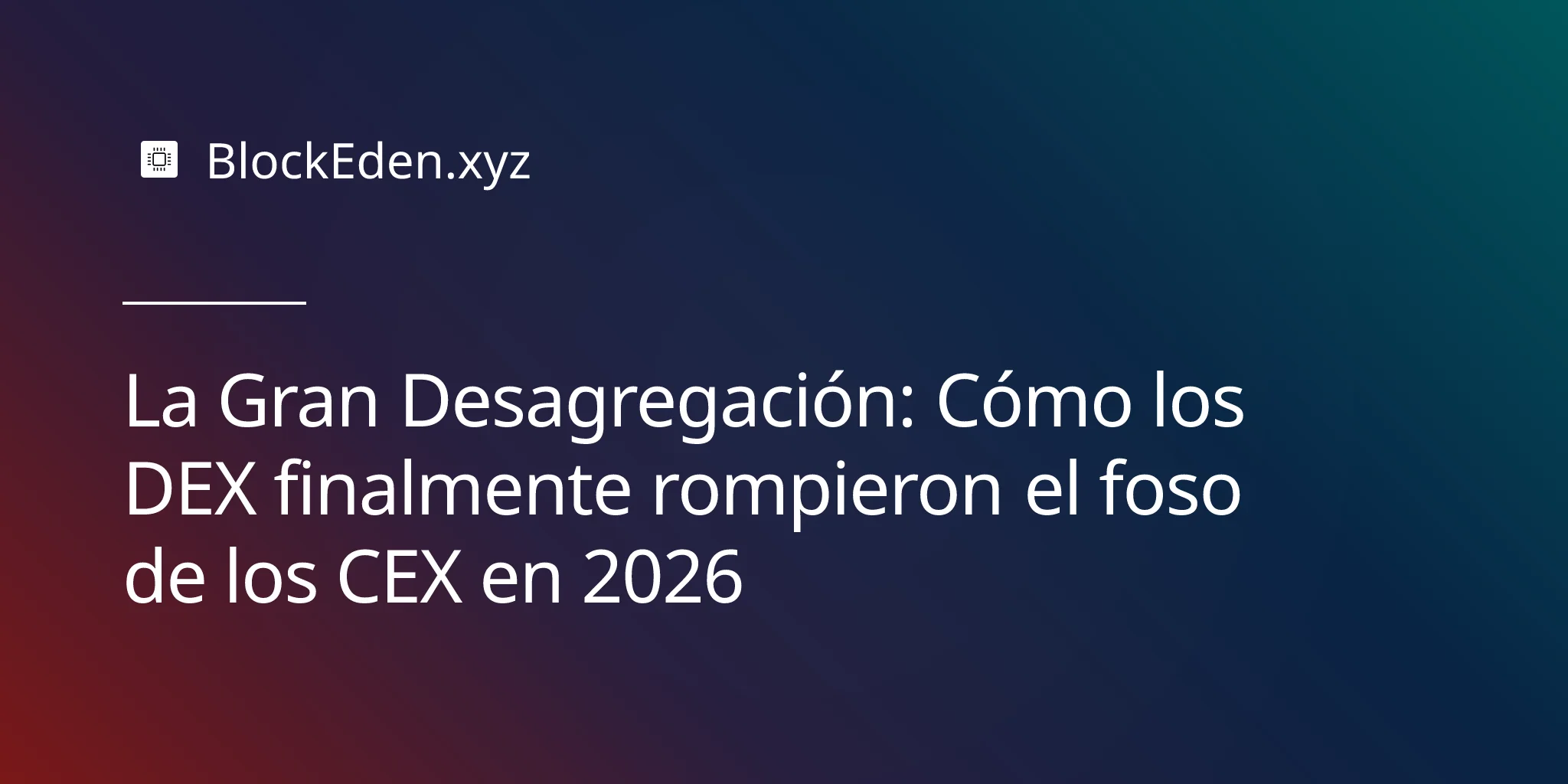 Durante la mayor parte de la historia de las criptomonedas, "DEX vs. CEX" fue un experimento mental que terminaba siempre de la misma manera: los CEX poseen la liquidez, el usuario minorista quiere una aplicación impecable y las instituciones exigen pasarelas fiat. DeFi era para los ideólogos. En 2026, ese argumento ya no es académico. La desagregación estructural del exchange centralizado está en marcha — y está siendo impulsada por tres fuerzas que finalmente convergieron: billeteras con abstracción de cadena, ejecución basada en intenciones y una profundidad de liquidez on-chain que rivaliza con los CEX de nivel medio.