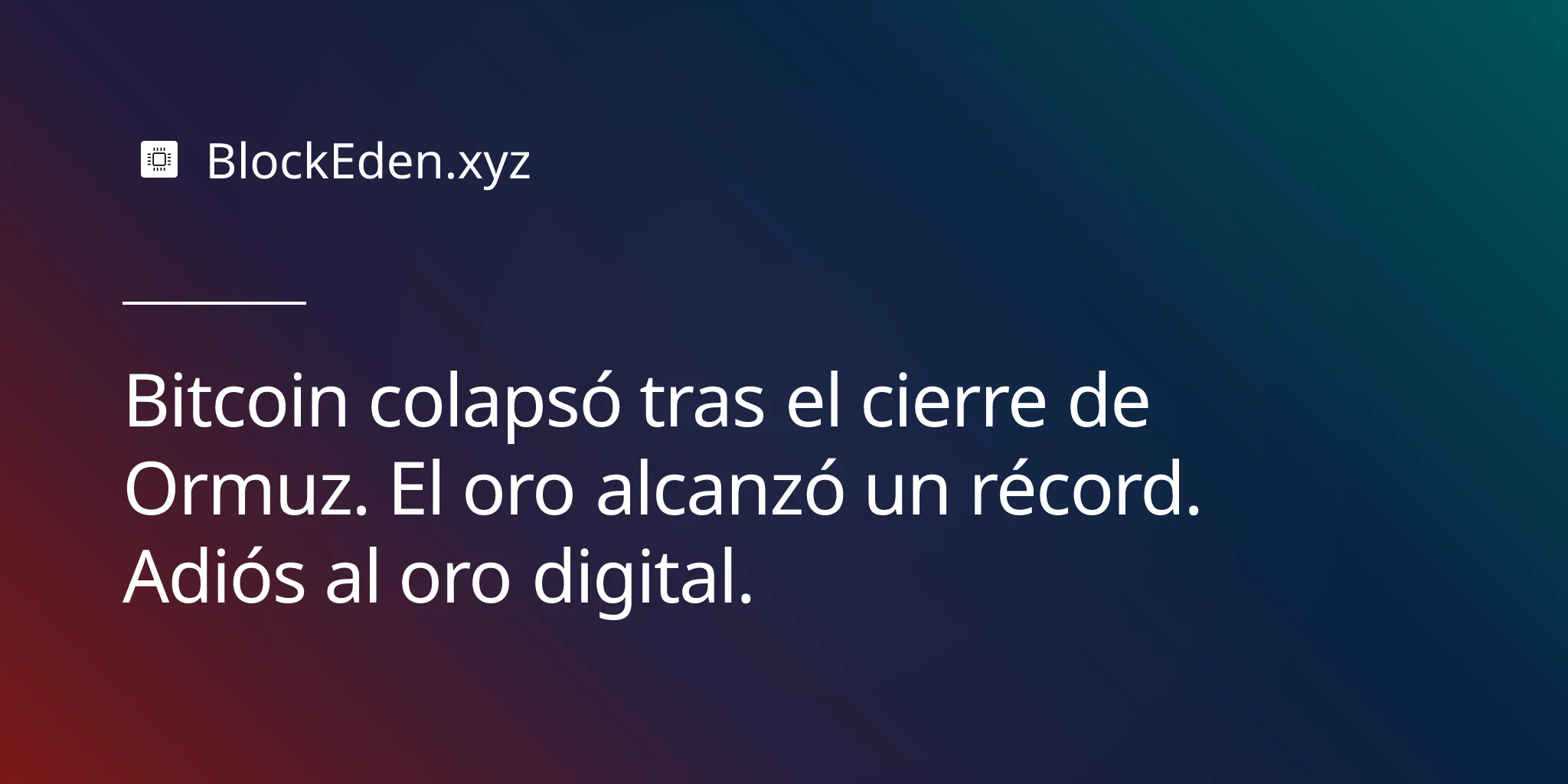 Ormuz cierra de nuevo. Bitcoin cotiza a la baja. El oro marca otro máximo. Bienvenido al ciclo posterior al ETF.