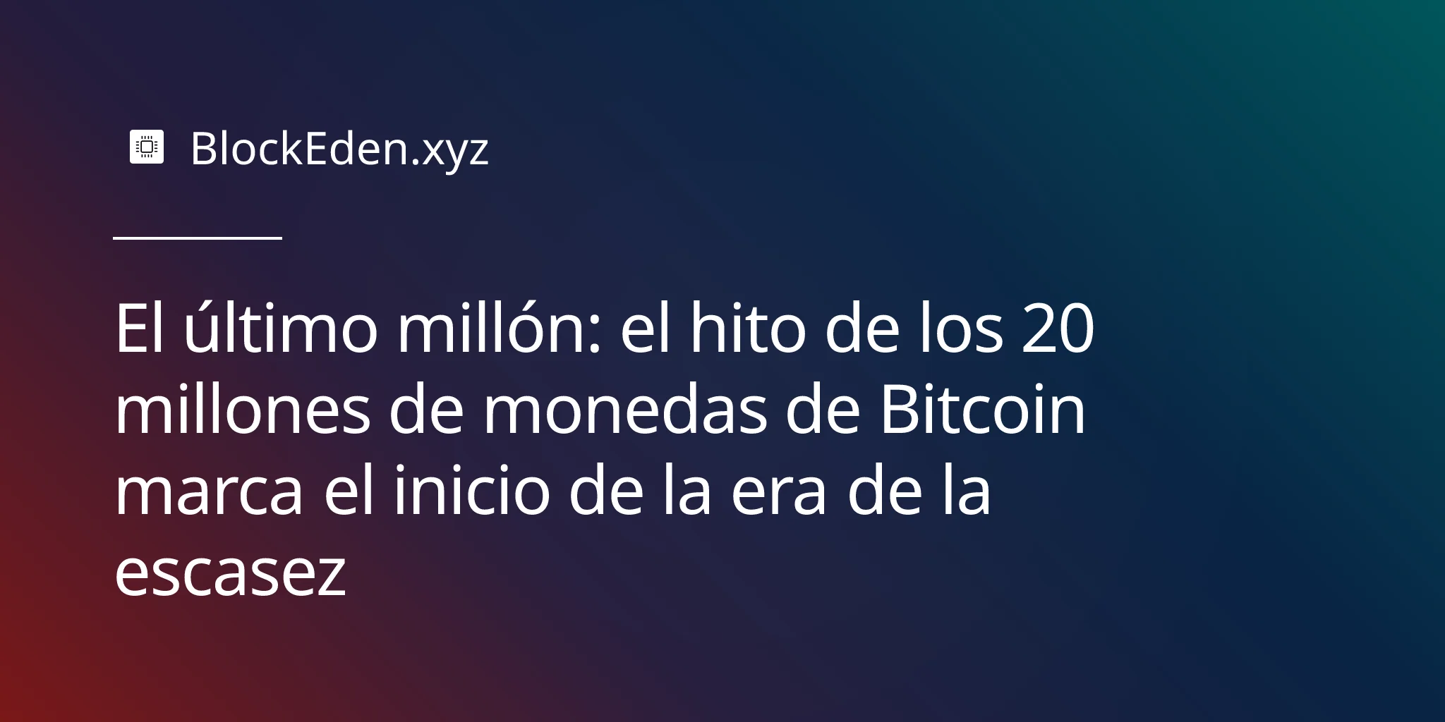 El hito de los 20 millones de monedas es diferente. Es un punto de inflexión psicológico y narrativo que replantea la historia de la escasez de Bitcoin en términos comprensibles para los humanos.