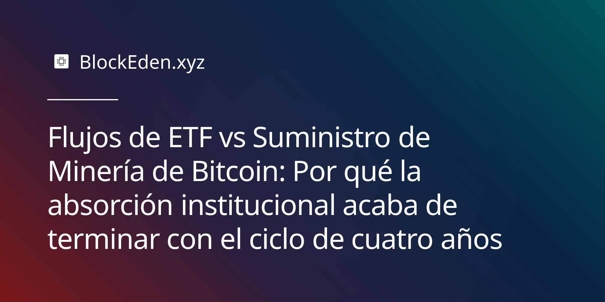 Una cosa es segura: con los ETF absorbiendo 18 veces la producción minera diaria, las instituciones ahora controlan el destino del precio de Bitcoin mucho más de lo que cualquier cronograma de halving lo hará jamás.