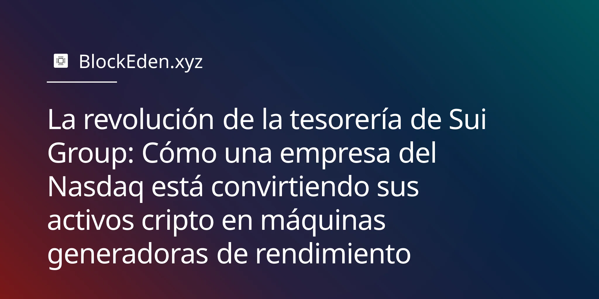 Lo que es seguro es que la empresa ha ido más allá del manual simplista de las DAT. En un mercado donde los ETF amenazan con convertir la exposición a las criptomonedas en un producto básico, Sui Group apuesta a que la generación activa de rendimiento, la integración en el ecosistema y la excelencia operativa pueden comandar valoraciones premium.