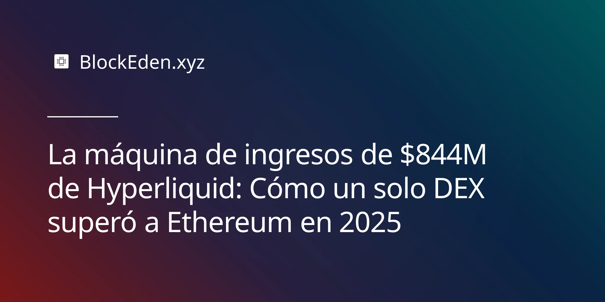 En 2025 , ocurrió algo sin precedentes en el cripto : un único exchange descentralizado generó más ingresos que toda la blockchain de Ethereum . Hyperliquid , una Layer 1 diseñada específicamente para el trading de futuros perpetuos , cerró el año con 844 millones de dólares en ingresos , 2,95 billones de dólares en volumen de trading y una cuota de mercado superior al 80 % en derivados descentralizados .