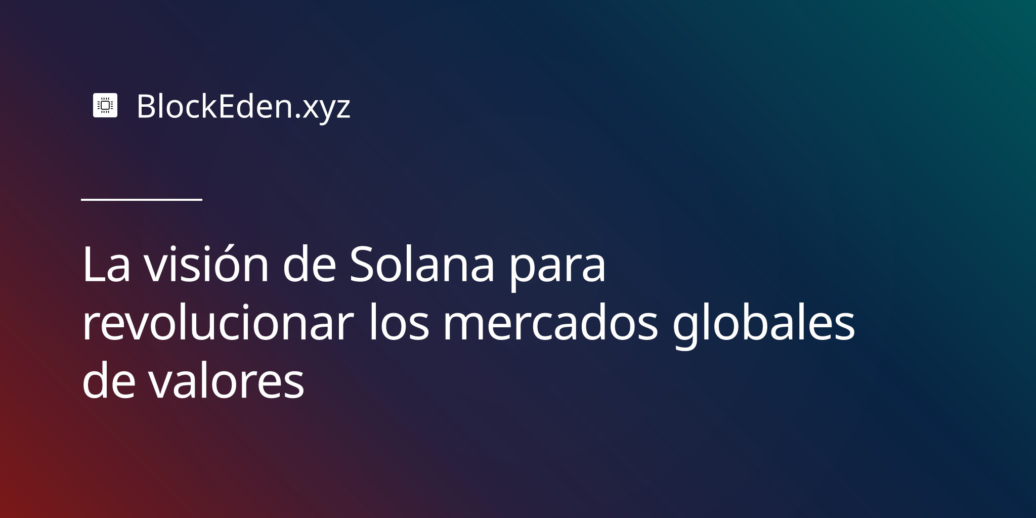 Anthony Scaramucci de SkyBridge Capital pronosticó en 2025: "En 5 años, miraremos hacia atrás y diremos que Solana tiene la mayor cuota de mercado de todas estas L1", lo que refleja la creciente convicción institucional de que las ventajas técnicas de Solana se traducirán en dominio del mercado. El consenso de la industria sugiere que el 10-20% del mercado de valores podría tokenizarse para 2035, lo que representa $27-54 billones en valores en cadena si el mercado total crece modestamente a $270-300 billones durante la próxima década.