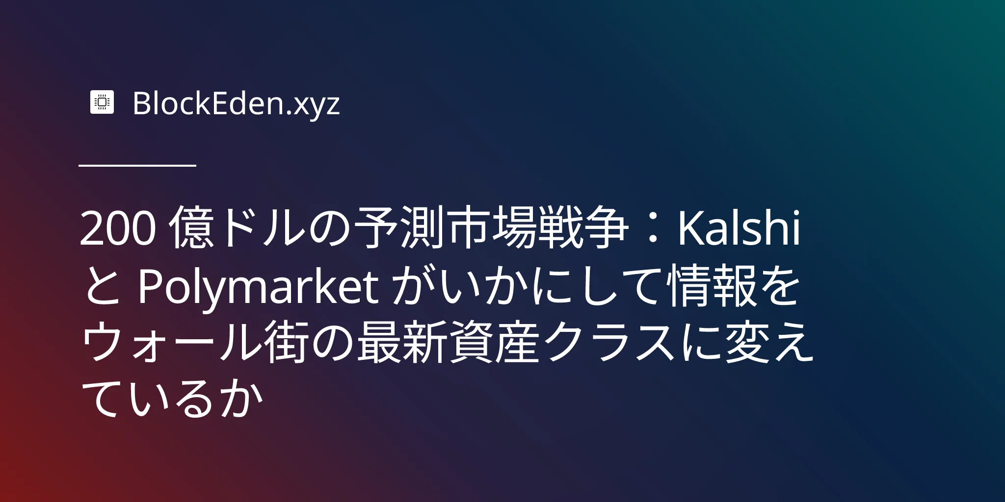 2026 年の予測市場の争いは、誰がより多くのスポーツ賭博を処理するかという話ではありません。それは、信念が取引可能、ヘッジ可能、そして最終的には収益化可能になる資産クラス、「情報金融(Information Finance)」のインフラを誰が構築するかという争いなのです。