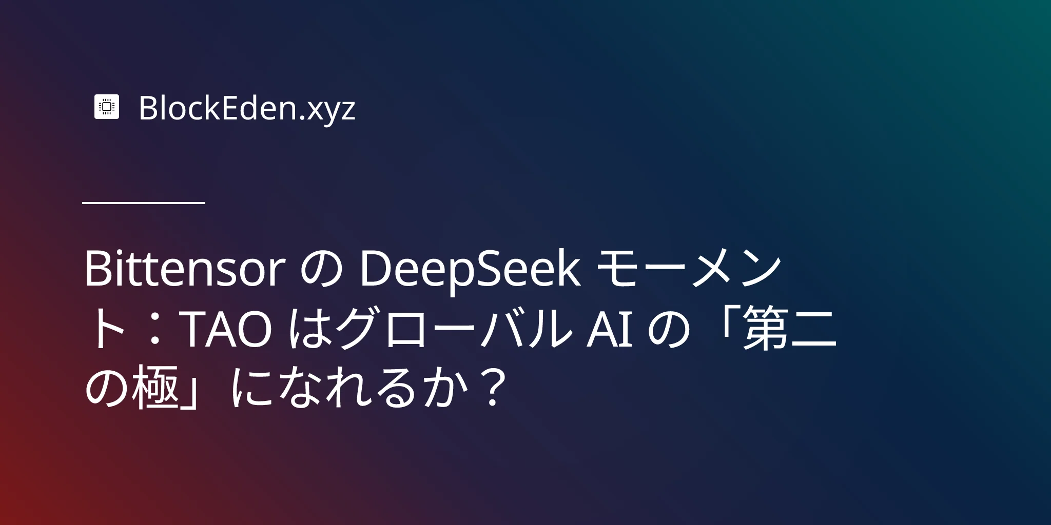 Bittensor の DeepSeek モーメント:TAO はグローバル AI の「第二の極」になれるか?