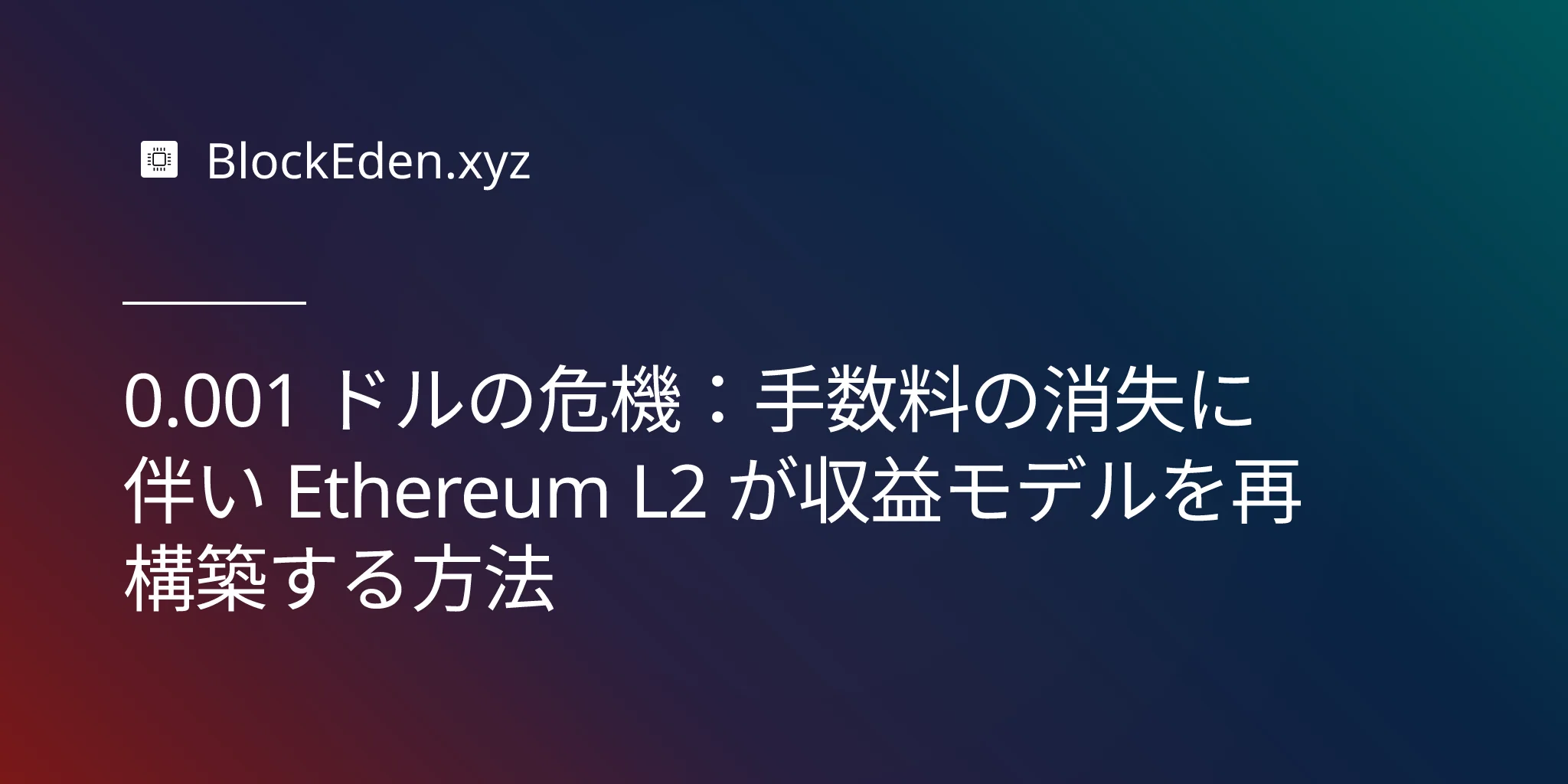 0.001 ドルの危機:手数料の消失に伴い Ethereum L2 が収益モデルを再構築する方法