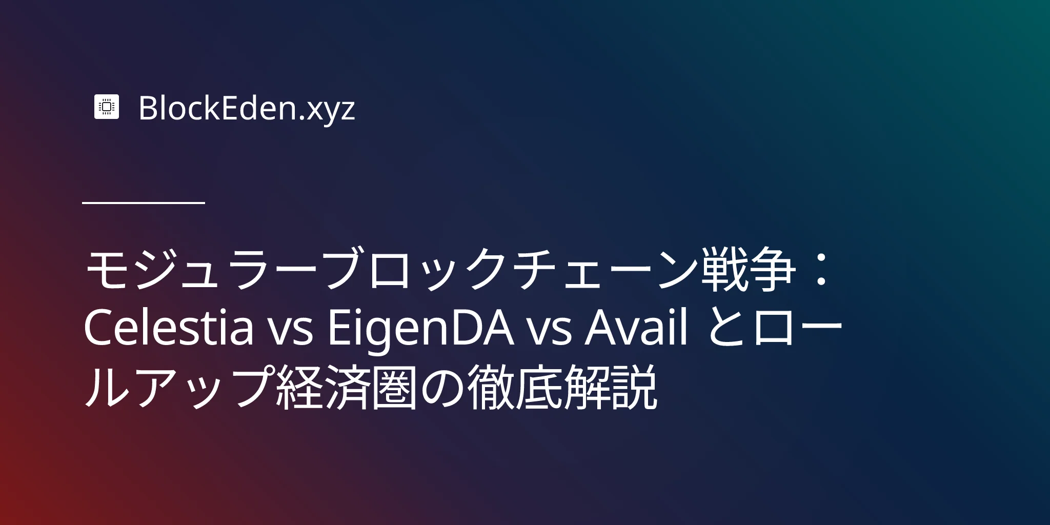 3 つのプロトコルが、モジュラーブロックチェーン時代のバックボーンとなるべく競い合っています。この概念を実証したパイオニアである Celestia、190 億ドル相当のリステーク(Restaked)資産を活用する Ethereum 寄りの挑戦者 EigenDA、そしてあらゆるエコシステムの接続を目指すユニバーサル DA レイヤー Avail です。勝者は単に手数料を獲得するだけでなく、次世代のブロックチェーンがどのよう に構築されるかを定義することになります。