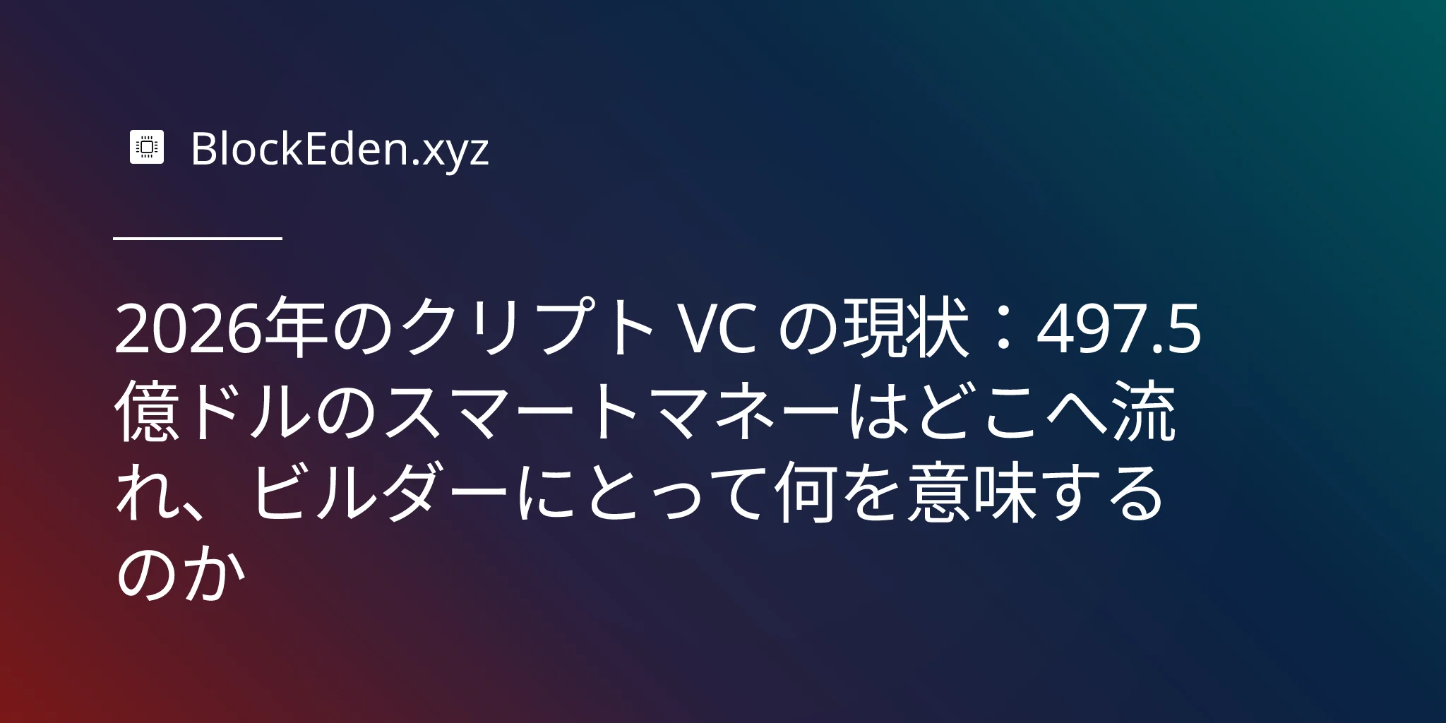 これが 2026年におけるクリプト・ベンチャーキャピタルの現状です。誰が何に投資しているのか、どのナラティブが資本を引きつけたのか、そしてビルダーがこの環境で資金調達をするために知っておくべきことは何かを解説します。