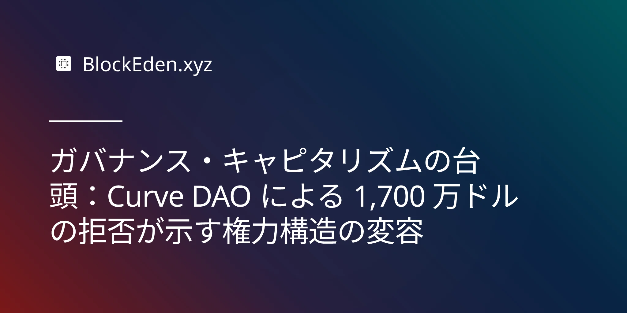 ガバナンス・キャピタリズムの台頭:Curve DAO による 1,700 万ドルの拒否が示す権力構造の変容