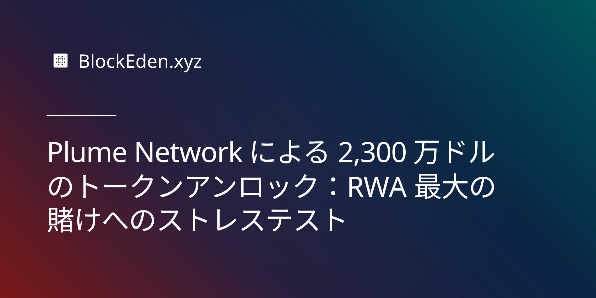 Plume Network による 2,300 万ドルのトークンアンロック:RWA 最大の賭けへのストレステスト