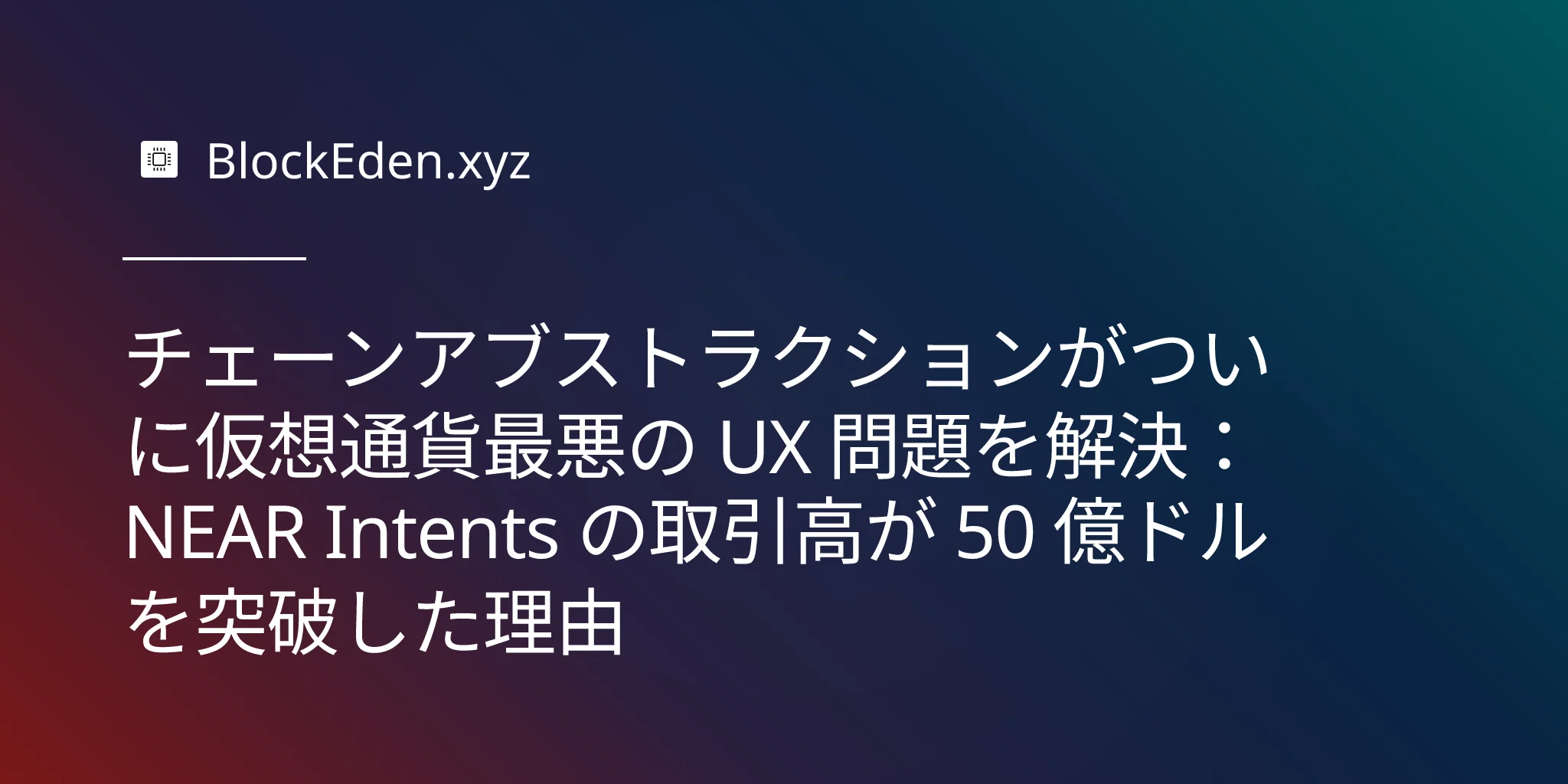 チェーンアブストラクションがついに仮想通貨最悪の UX 問題を解決:NEAR Intents の取引高が 50 億ドルを突破した理由