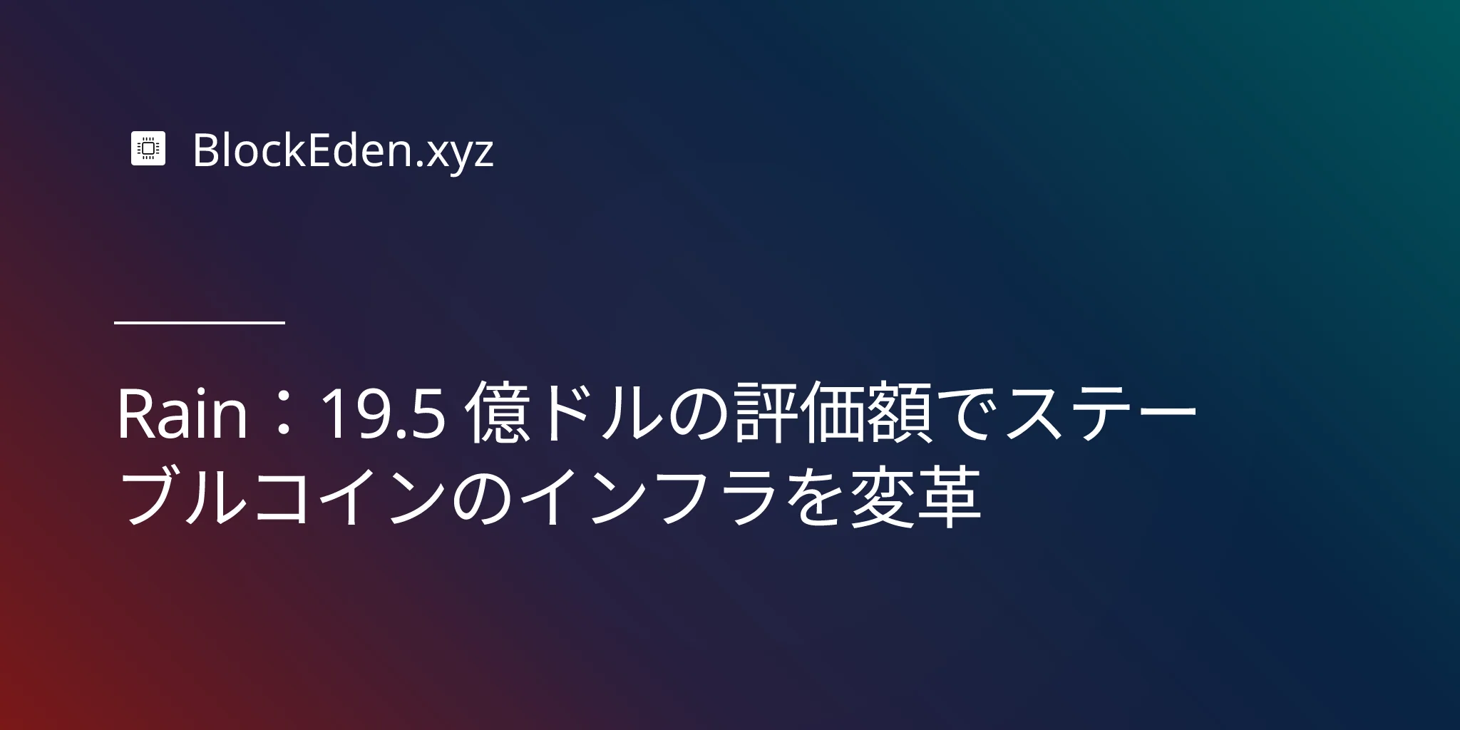 10 ヶ月で 17 倍の評価額上昇。1 年足らずで 3 回の資金調達。年換算で 30 億ドルの取引。2026 年 1 月 9 日に Rain が 19.5 億ドルの評価額で 2.5 億ドルのシリーズ C を発表したとき、それは単なる新たなクリプト・ユニコーンになっただけではありませんでした。ステーブルコインにおける最大のチャンスは投機ではなくインフラにあるという仮説を証明したのです。