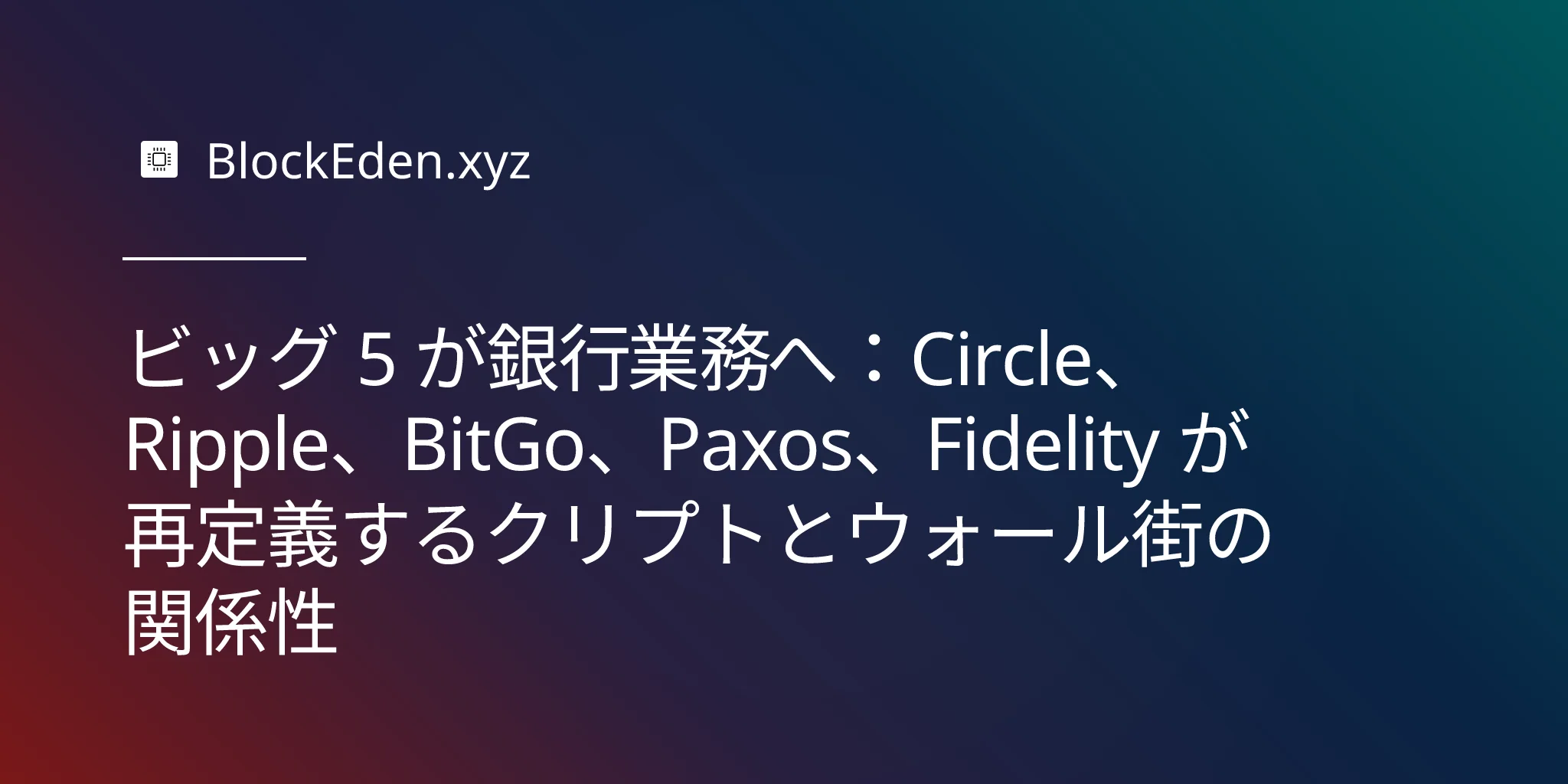 ビッグ 5 が銀行業務へ:Circle、Ripple、BitGo、Paxos、Fidelity が再定義するクリプトとウォール街の関係性