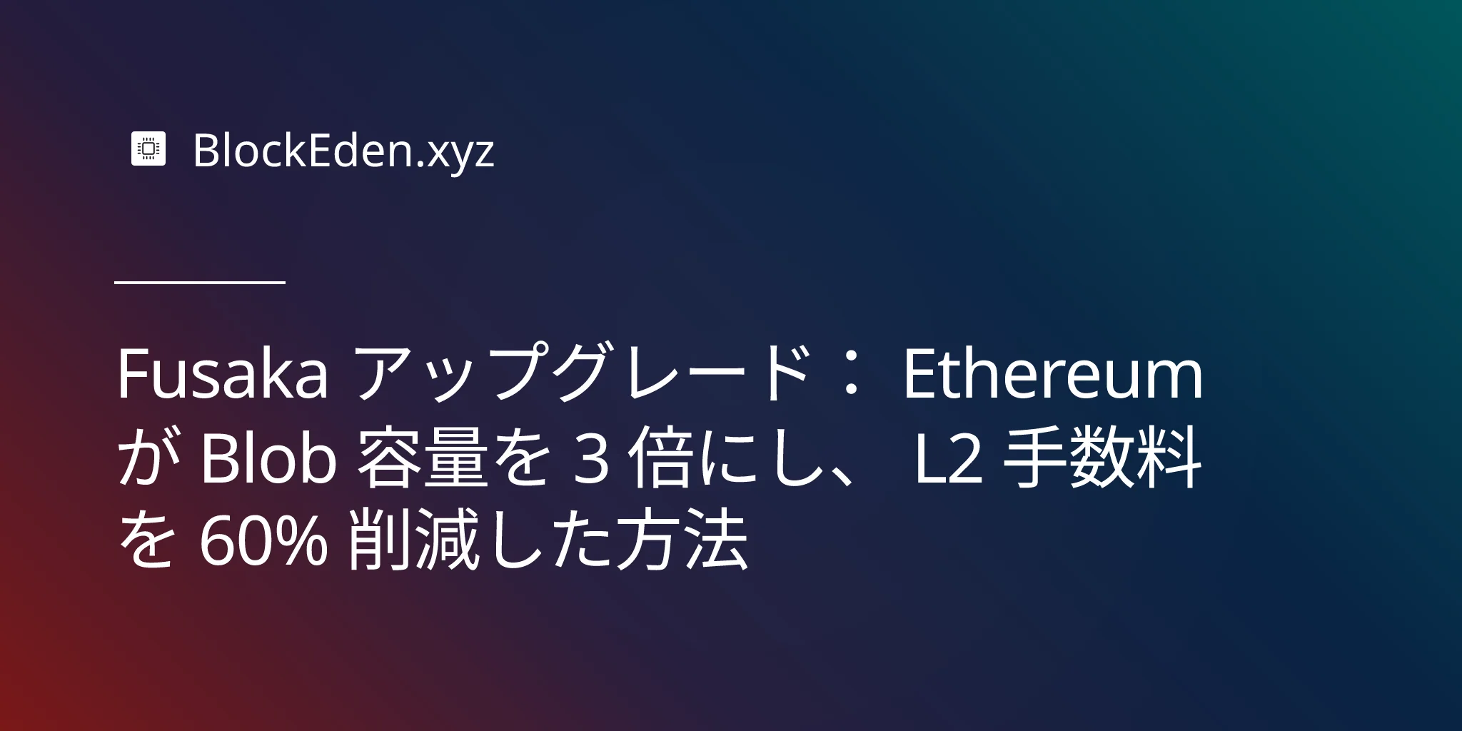 Fusaka アップグレード: Ethereum が Blob 容量を 3 倍にし、 L2 手数料を 60% 削減した方法