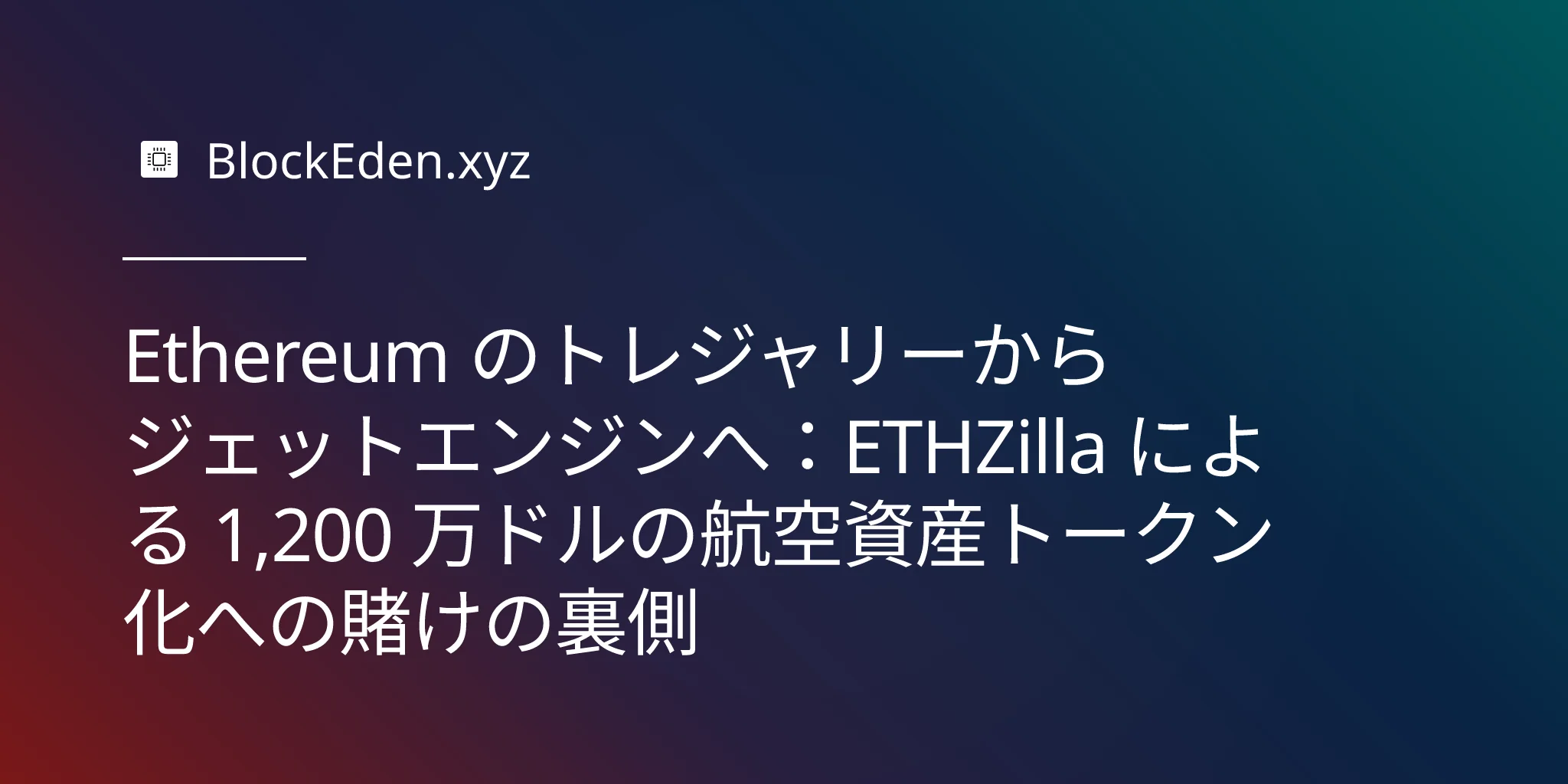 Ethereum のトレジャリーからジェットエンジンへ:ETHZilla による 1,200 万ドルの航空資産トークン化への賭けの裏側