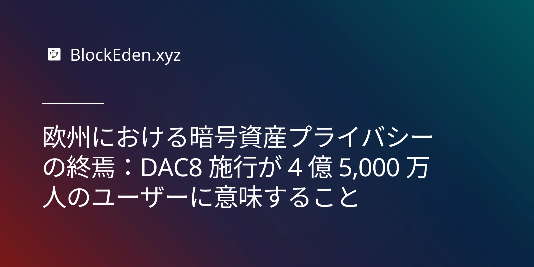 暗号資産を利用する可能性のある約 4 億 5,000 万人の EU 居住者にとって、DAC8 はデジタル資産を半プライベートな金融ツールから、大陸で最も監視される資産クラスの一つへと変貌させます。その影響は税務コンプライアンスをはるかに超え、中央集権型プラッ トフォームと分散型プラットフォームの間の競争環境を再構築し、EU 域外への資本流出を促し、完全な財務透明性の世界において暗号資産が何を意味するのかという根本的な問いを突きつけています。